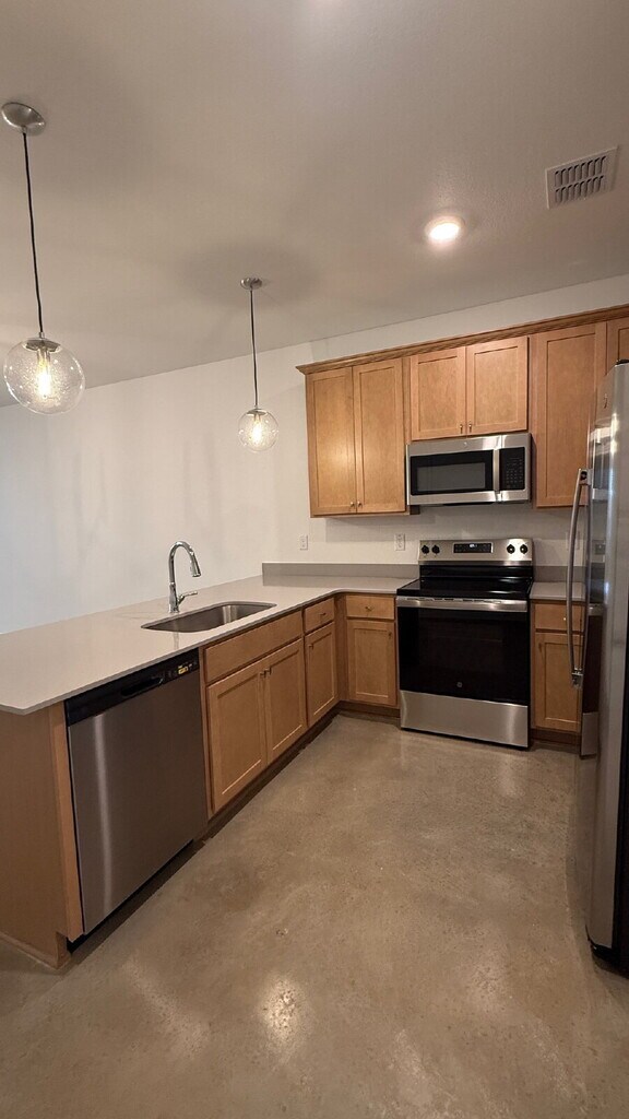 BRAND NEW 3/2 w/ Fenced Yard – $1,425 + FREE JAN RENT! For Lease – 2912 Wildcat Ridge Rd Unit B, Temple, TX Be the first to live in this never-occupied, brand-new construction 3 bedroom, 2 bath duplex located in a quiet and growing Temple neighborhood, offering 1,175 sq ft of modern living with quartz countertops, stainless steel appliances, a private fully fenced yard, and a garage. Move in before February 1 and receive December and January rent FREE. This never-lived-in home features an open-concept layout with polished concrete floors, recessed lighting, and abundant natural light. The kitchen includes quartz countertops, modern cabinetry, a large island with pendant lighting, and brand-new stainless steel appliances, making it ideal for both daily living and entertaining. The primary suite includes an en-suite bathroom and generous closet space. Secondary bedrooms are well-sized and versatile. Bathrooms feature quartz countertops and clean, modern finishes. Washer and dryer hookups only are provided. Enjoy your private fenced backyard, automatic sprinkler system, and a 1-car garage with automatic opener. Conveniently located near HEB, shopping, dining, and major roadways. Move-In Special January rent FREE if moved in before February 1. Property Features: Brand new construction – never lived in 3 bedrooms / 2 bathrooms 1,175 sq ft Open-concept floor plan Polished concrete flooring throughout Quartz countertops in kitchen & baths Stainless steel appliances Washer/dryer hookups only Private, fully fenced yard Automatic sprinkler system 1-car garage with opener Convenient Temple location near shopping & dining Lease Details: 12-month minimum lease Pets allowed Tenant responsible for utilities and yard maintenance Schedule your showing today and take advantage of this limited-time move-in special.
