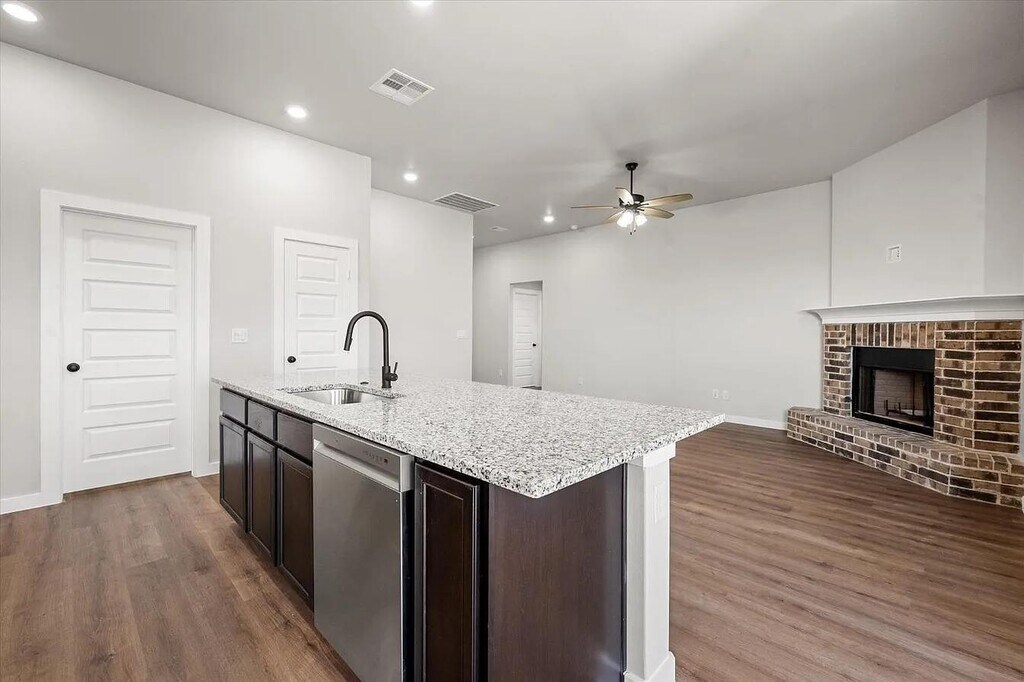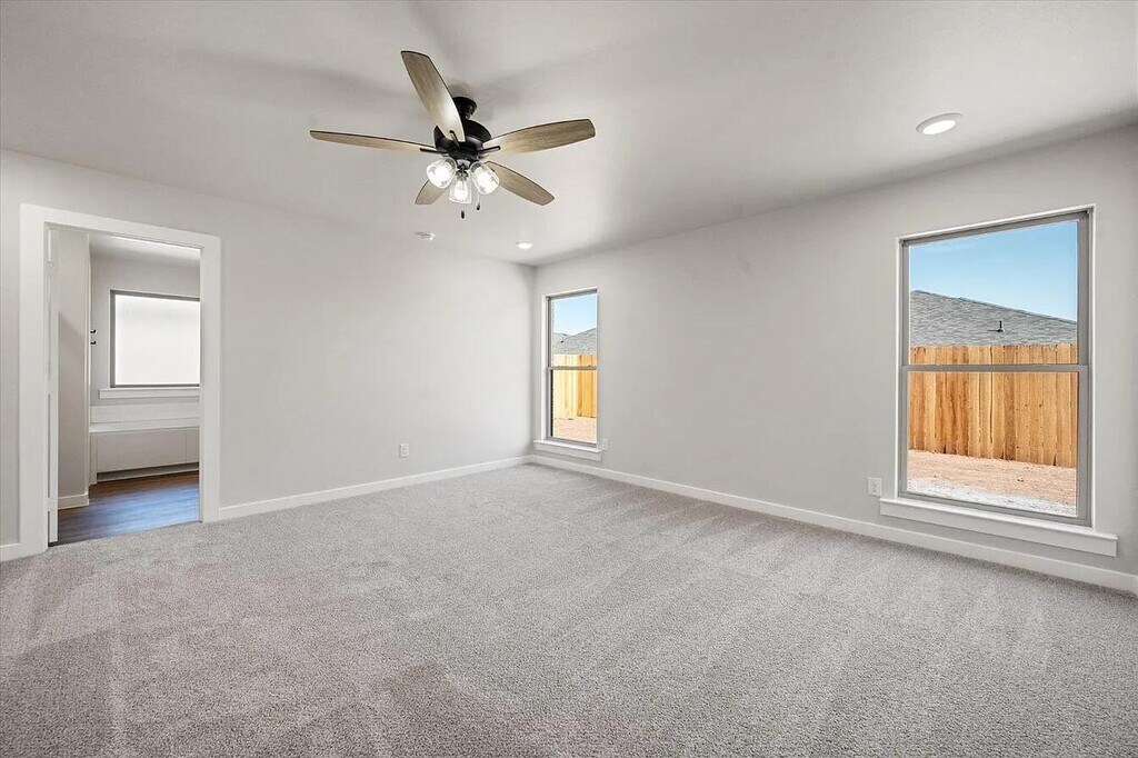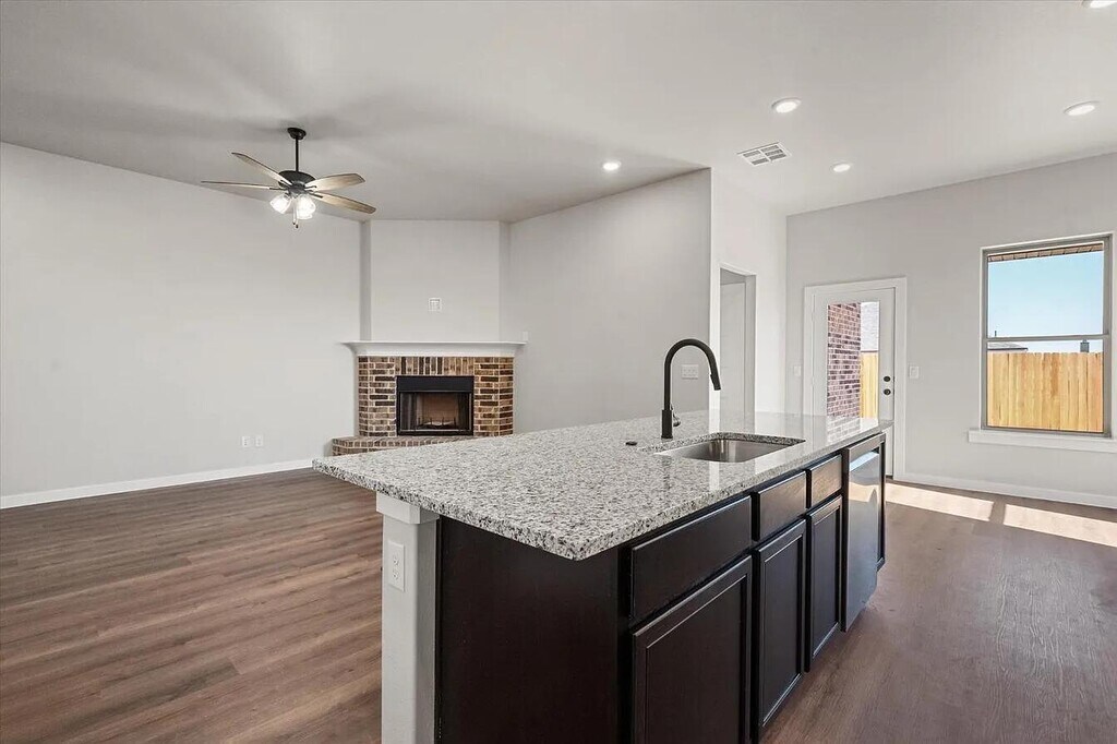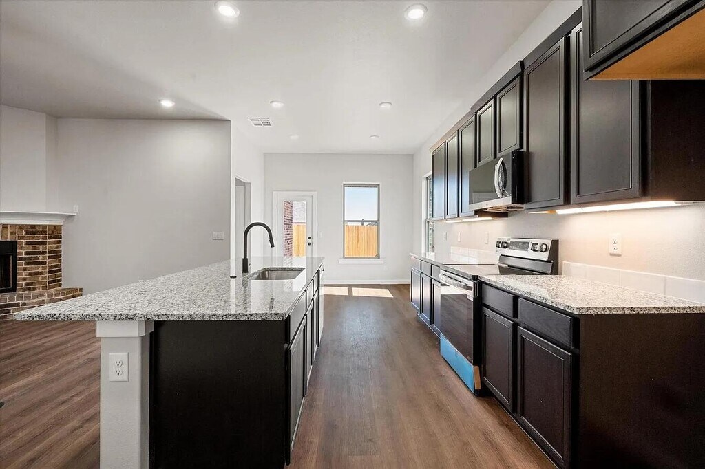 This 2024-built home features a modern open-concept layout with quality finishes throughout. Vinyl plank flooring in the main living areas pairs with carpeted bedrooms for comfort and durability. The kitchen includes stainless steel appliances (electric stove, dishwasher, microwave), pantry, and a center island with seating, complemented by granite countertops and ample workspace. The living area features a cozy fireplace. The secluded primary suite offers privacy and comfort with a large walk-in closet, soaking tub, and walk-in shower. Additional highlights include a two-car garage and sod in both front and fenced in back yard, ceiling fans throughout, and washer/dryer connections inside a laundry room for everyday convenience. Roommates Policy: Allowed with increased security deposit (full month's rent) Pet Policy: Up to 2 small pets (40 lbs and under) allowed with $300 pet deposit. No aggressive breeds. Puppies under 2 years old subject to $30/pet per month pet rent. Schools: Frenship ISD - Upland Heights Elementary, Frenship Middle, Frenship High