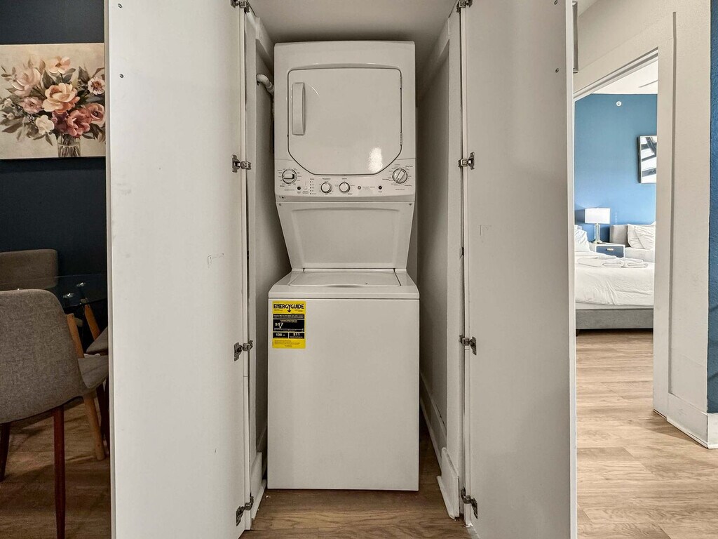 The advertised rate of $3,337/month is the lowest available price, based on a 30 day(s) stay with a move-in date of March 27, 2026. Rates vary depending on the duration of stay, season, and other parameters. For exact pricing and additional pricing components, please visit our website and enter your desired move-in and move-out dates. The rate is applicable when billed upfront; it can be higher if billed in multiple payments. Experience comfort and style in this spacious 2-bedroom, 2-bathroom apartment in the heart of Deep Ellum. Feel at home in this contemporary space, thoughtfully designed to deliver comfort, functionality, and a relaxing atmosphere. The open-concept living and dining area blends modern design with cozy touches, featuring sleek LED lighting, chic furnishings, warm wood floors, and large windows that fill the space with natural light. Relax in a comfortable and inviting living space with a sofa bed, armchair, coffee table, and a 65” 4K HDR Smart TV with Netflix. The fully equipped kitchen includes an oven, stovetop, full-size refrigerator, dishwasher, cookware, glassware, silverware, coffee maker with ground coffee, and a kettle. Both full bathrooms include modern fixtures, bathtubs with showers, fresh towels, mirrors, and essential toiletries. Enjoy modern amenities including a sparkling pool, fully equipped gym, and free parking. Pets are welcome with prior approval and are subject to a cleaning fee based on the length of stay: $25/night for stays of 1–4 nights, $200 per pet for stays of 5–29 nights, and $300 per pet for stays of 30+ nights. Please request approval before booking to avoid any issues. Located in the vibrant Deep Ellum district, this apartment puts you in the heart of Dallas’s arts and entertainment scene. Explore street murals, live music venues, trendy bars, and eclectic restaurants just steps away. Conveniently close to public transit, downtown attractions, and shopping, the area offers both excitement and convenience. Major highways and thoroughfares are just minutes away, making access to the wider Dallas area simple and convenient. Public transit, rideshares, and taxis are readily available nearby. Walking is easy for local dining, entertainment, and nightlife. For safety and compliance, guest verification is required prior to arrival. All guests must provide a valid government-issued photo ID, verify contact information, and complete a secure online verification process. A noise monitoring device is installed inside the unit, which monitors sound levels only, not conversations. The thermostat is preset to a comfortable temperature range and only the host can adjust it remotely if necessary. Guests may request temperature changes, as direct control access is limited. The primary bedroom features a dedicated desk and chair for work or study. [SI]