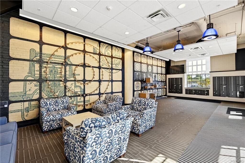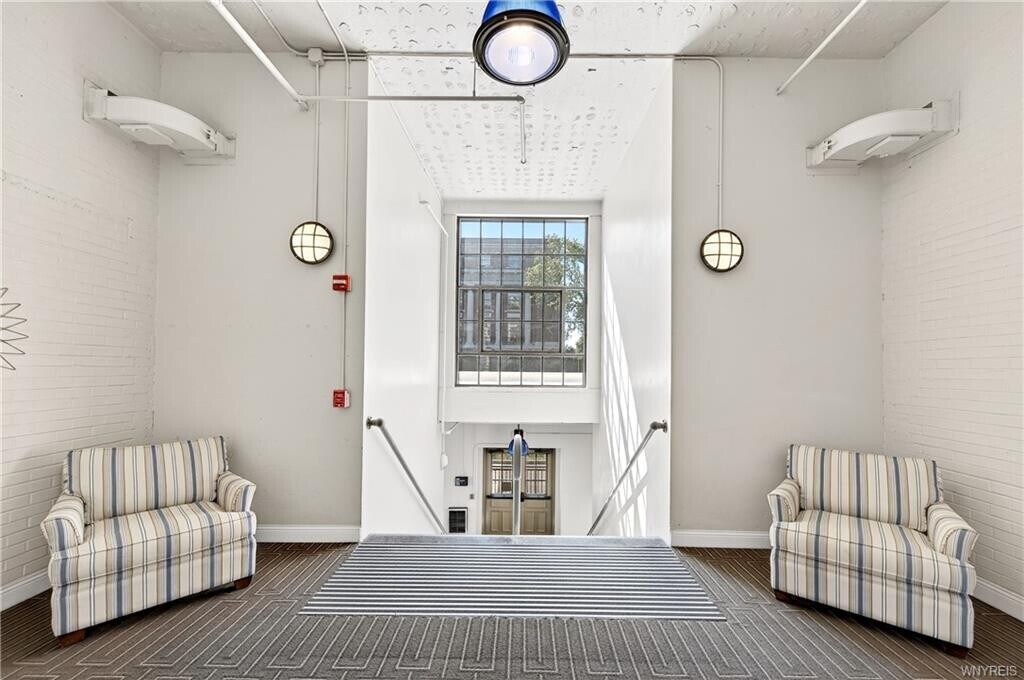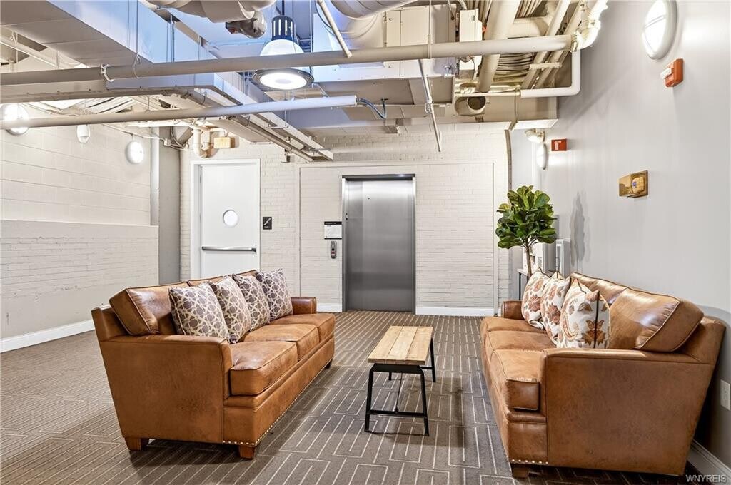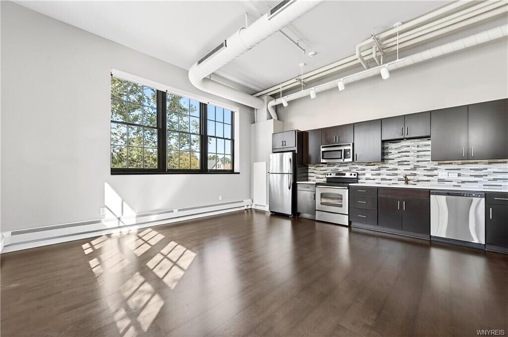 Stunning 1 bed, 1 bath corner unit at the historic Bethune Lofts. Formerly the home of the Buffalo Meter Company, Bethune Lofts features 87 condo units located just steps from Hertel Avenue & University at Buffalo, South Campus. This bright & spacious end unit boasts soaring ceilings, southern & western exposure for incredible light & sunsets, & an ideal unit location w/ no direct neighbors above. This fabulous open-concept living space features an updated kitchen w/ granite counters, stainless steel appliances, sleek dark wood cabinetry & generous storage. The large Living/Dining area offers newer luxury vinyl flooring, fabulous oversized windows, & wonderful neighborhood views. The primary bedroom features a closet w/ organizers, plush wall/wall carpeting & an overhead ceiling fan. The large full bathroom boasts tile flooring, generous storage, & a large walk-in shower. Additional unit highlights include: Central Air, Pets allowed, Open Parking available, & Heat included in your HOA. The Bethune lofts offers incredible amenities & carefree living by providing an on-site fitness center, secure bike storage, laundry facilities, stylish common areas, secured entry & gated parking. On-site storage space available for an additional fee. The Bethune Lofts offers quick access to all of Hertel Avenue's amenities, the Buffalo Niagara Medical Campus, UB South Campus & McCarthy Park.