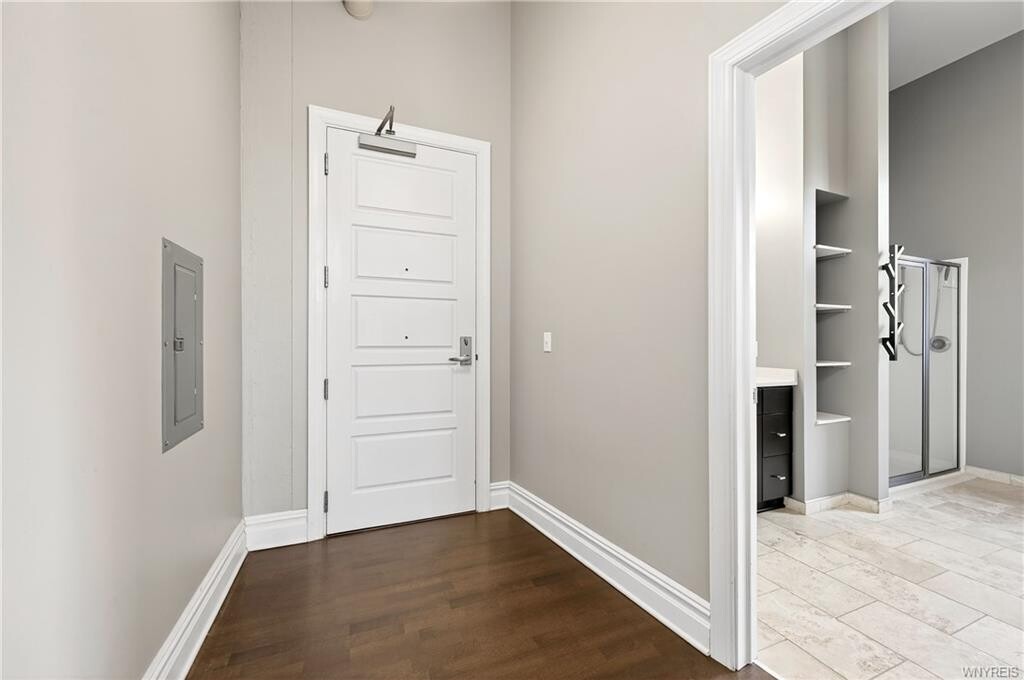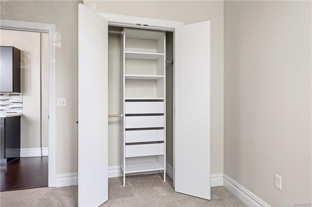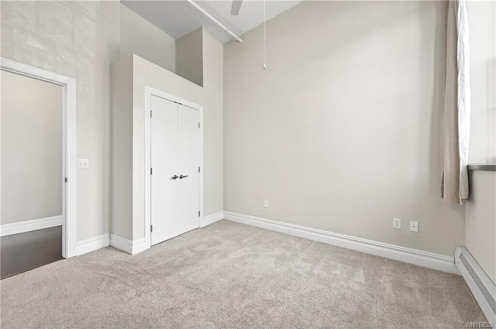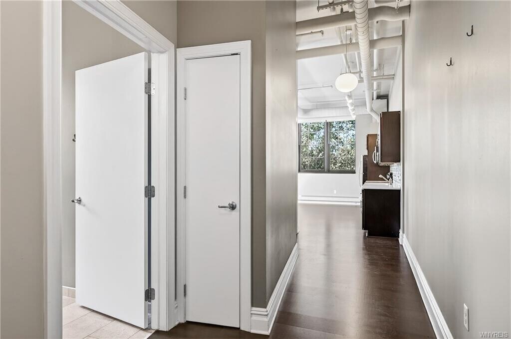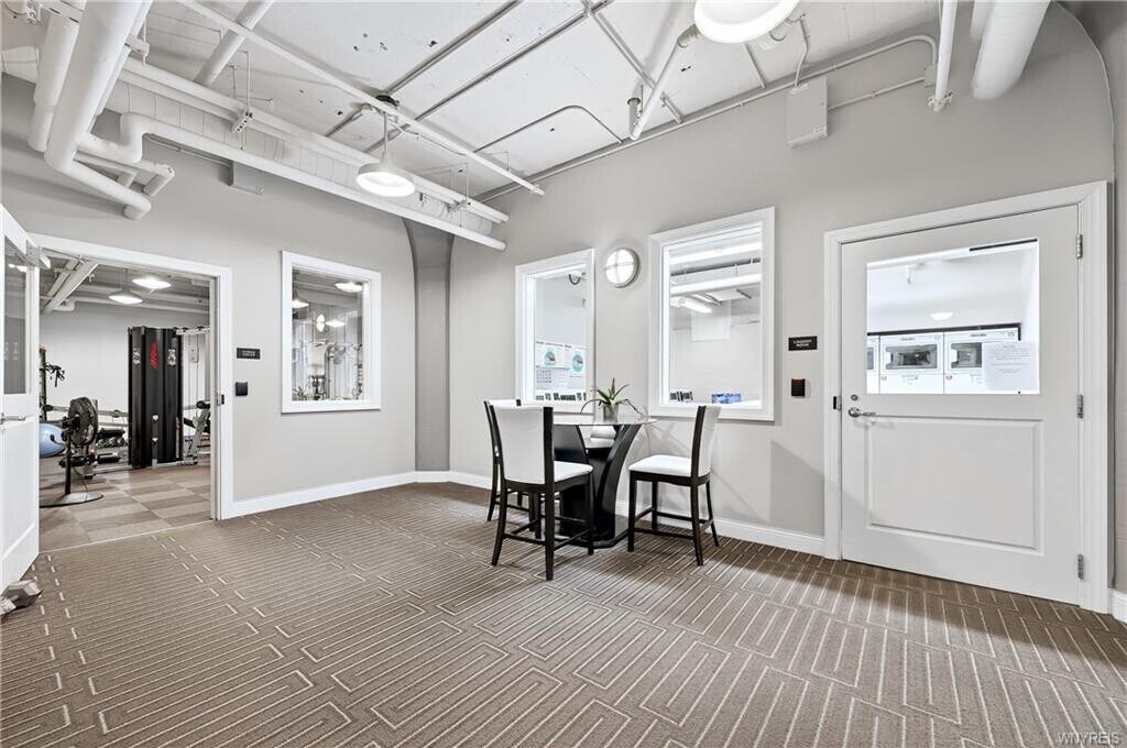 Stunning 1 bed, 1 bath corner unit at the historic Bethune Lofts. Formerly the home of the Buffalo Meter Company, Bethune Lofts features 87 condo units located just steps from Hertel Avenue & University at Buffalo, South Campus. This bright & spacious end unit boasts soaring ceilings, southern & western exposure for incredible light & sunsets, & an ideal unit location w/ no direct neighbors above. This fabulous open-concept living space features an updated kitchen w/ granite counters, stainless steel appliances, sleek dark wood cabinetry & generous storage. The large Living/Dining area offers newer luxury vinyl flooring, fabulous oversized windows, & wonderful neighborhood views. The primary bedroom features a closet w/ organizers, plush wall/wall carpeting & an overhead ceiling fan. The large full bathroom boasts tile flooring, generous storage, & a large walk-in shower. Additional unit highlights include: Central Air, Pets allowed, Open Parking available, & Heat included in your HOA. The Bethune lofts offers incredible amenities & carefree living by providing an on-site fitness center, secure bike storage, laundry facilities, stylish common areas, secured entry & gated parking. On-site storage space available for an additional fee. The Bethune Lofts offers quick access to all of Hertel Avenue's amenities, the Buffalo Niagara Medical Campus, UB South Campus & McCarthy Park.