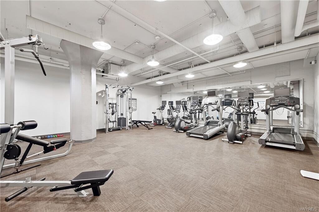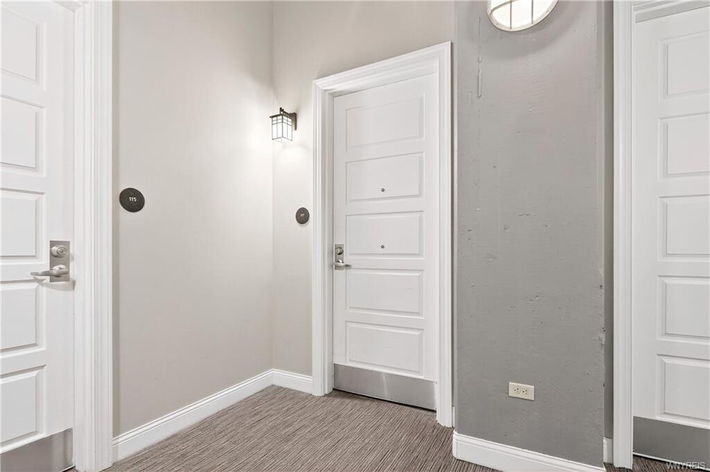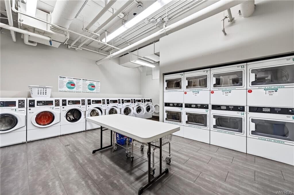 Stunning 1 bed,1 bath corner unit at the historic Bethune Lofts. Formerly the home of the Buffalo Meter Company,Bethune Lofts features 87 condo units located just steps from Hertel Avenue & University at Buffalo,South Campus. This bright & spacious end unit boasts soaring ceilings,southern & western exposure for incredible light & sunsets,& an ideal unit location w/ no direct neighbors above. This fabulous open-concept living space features an updated kitchen w/ granite counters,stainless steel appliances,sleek dark wood cabinetry & generous storage. The large Living/Dining area offers newer luxury vinyl flooring,fabulous oversized windows,& wonderful neighborhood views. The primary bedroom features a closet w/ organizers,plush wall/wall carpeting & an overhead ceiling fan. The large full bathroom boasts tile flooring,generous storage,& a large walk-in shower. Additional unit highlights include: Central Air,Pets allowed,Open Parking available,& Heat included in your HOA. The Bethune lofts offers incredible amenities & carefree living by providing an on-site fitness center,secure bike storage,laundry facilities,stylish common areas,secured entry & gated parking. On-site storage space available for an additional fee. The Bethune Lofts offers quick access to all of Hertel Avenue's amenities,the Buffalo Niagara Medical Campus,UB South Campus & McCarthy Park.