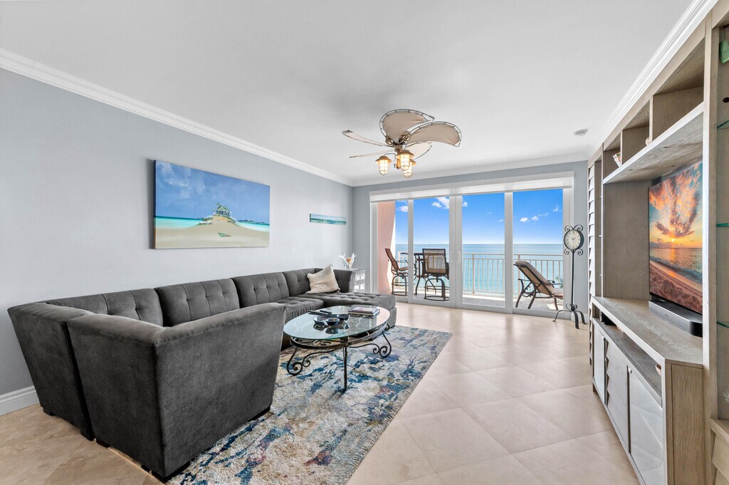 Experience amazing ocean views from this beautiful 2-bedroom, 2-bathroom corner unit in an oceanfront building! Enjoy the scenery from the high-ceiling living and dining area. A large private balcony offers the perfect space to relax or entertain while enjoying the sea breeze. This fully furnished condo features spacious bedrooms with incredible direct ocean views! The bathrooms are designed for comfort, including walk-in showers and a jacuzzi tub. Ideally located between upscale Boca Raton and vibrant Delray Beach.