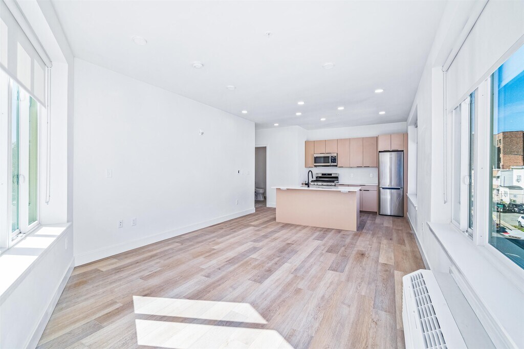 Jersey City's skyline has a new star shining brightly above McGinley Square. The North Star Apartments officially open their doors, offering an unmatched blend of modern luxury and quintessential comfort. The Polaris Flats blends Timeless Elegance with a Modern Twist featuring traditional ambiance with champagne cabinets, LVP wood floors, and quartz counters. The attention to detail is evident in every aspect, from the terrazzo tile baths to the high-tech Wi-Fi-enabled door locks and appliances, ensuring that residents live in the lap of luxury and connectivity. Unrivaled Amenities at Your Fingertips At The North Star Apartments, every convenience is catered to: Technology and Security: Video intercom system and key fob entry ensure peace of mind. Rooftop Terrace: An outdoor kitchen and stunning NYC skyline views create a perfect entertainment space. Fitness Room: Stay active with weights, yoga gear, and a wellness center designed by Fitness 4 Lyfe and Hudson Steel Miami Super Gym. Laundry, Bike Storage, and Package Room: Practical needs are met with thoughtful solutions, enhancing everyday living. The North Star Gym is a marvel of fitness technology and design. With multi-station exercise equipment, free weights, and a range of cardio options, residents can achieve their fitness goals without stepping outside. A Location that Embodies Convenience and Culture Nestled at 725 Bergen Avenue, The North Star Apartments are located at the high point of Jersey City's "Restaurant Row," offering residents a taste of the city's finest culinary delights just a step away from the comfort of their homes. (Pictures may not represent the actual floor plan, but all kitchens, bathrooms, colors, features, appliances and design are the same.)
