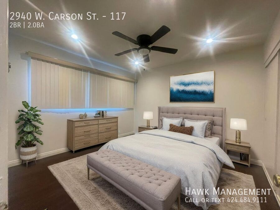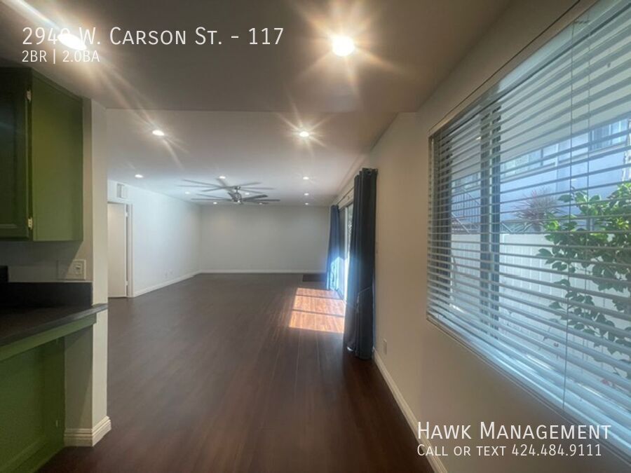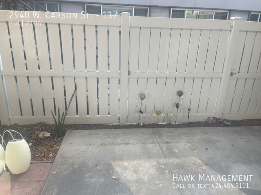 Freshly painted and move-in ready, this bright first-floor home offers comfort and convenience in a gated community. The large living room includes a dedicated dining area, and the roomy kitchen has space for a breakfast table. The primary bedroom features a private en-suite bath. Ceiling fans throughout and abundant natural light add to the welcoming feel. A private porch provides outdoor space for relaxing or entertaining. Three parking spaces are included within the secure, gated building. Utilities included are cable, internet, water, trash, sewer, and gardening. Appliances provided are refrigerator, stove/oven, microwave, and dishwasher. Pets are welcome. Close to shopping, dining, and major freeways, this home offers excellent value in a sought-after Torrance neighborhood. * Photos are staged- unit is not furnished. This unit won’t last long. Secure your spot today! Schedule a viewing by calling x108 or emailing . ** At Hawk Management, we strive to provide an experience that is cost-effective and convenient. All Hawk Management residents are enrolled in the Resident Benefits Package (RBP) for $40.95 per month in addition to the advertised rent. This includes liability insurance, credit-building opportunities with on-time rent payments (optional), $1M identity protection, a move-in concierge for easy utility setup, and an exclusive resident rewards program, added to every property as a required program. More details upon application. ***If you provide your own insurance policy, the RBP cost will be reduced by the amount of the insurance premium billed by Second Nature Insurance Services (NPN No. 20224621). Broker License #01924661