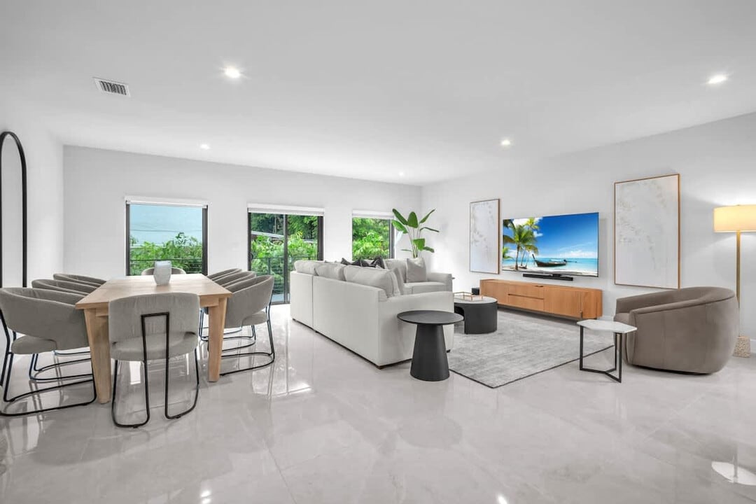 The advertised rate of $10,933/month is the lowest available price, based on a 1 month(s) stay with a move-in date of April 5, 2026. Rates vary depending on the duration of stay, season, and other parameters. For exact pricing and additional pricing components, please visit our website and enter your desired move-in and move-out dates. The rate is applicable when billed upfront; it can be higher if billed in multiple payments. Welcome to Casa Bella! Feel at home in this newly built home, designed with comfort and connection in mind. This home has 4 bedrooms and 3.5 bathrooms. Every detail, from the modern furnishings to the cozy living spaces, has been selected to create the perfect place for guests to relax and make lasting memories together. The open living room features a cozy sectional, great for movie nights or relaxing together. The bright layout flows into the dining area, a perfect spot for meals and conversations. The modern kitchen comes fully equipped with brand-new appliances, making it easy to cook dinners or quick snacks. This is a never-lived-in home, and every detail—from the furniture to the finishes—has been thoughtfully chosen to create a comfortable, stylish, and welcoming atmosphere. This home provides a comfortable, inviting setting with flexible accommodations for corporate or medical placements of 6–12 months. The parking space can accommodate up to 3 small sedans or 2 large SUVs. Pets are welcome with a fee of $100. Located in Miami’s Flagami neighborhood, within the Kew Gardens subdivision, a residential area known for its suburban feel, tree-lined streets, and single-family homes. The location is highly convenient, just minutes from Miami International Airport, major highways, and cultural hubs like Little Havana and Coral Gables, making it attractive for guests seeking an authentic Miami experience. The neighborhood is predominantly Hispanic/Latinx, giving it a vibrant cultural identity with plenty of local attractions. Wynwood Walls, Vizcaya Museum & Gardens, Enchanted Forest Park, Miami Design District, Bayfront Park & Bayside Marketplace, Miami Children’s Museum, Little Haiti Cultural Complex, and Miami Freedom Park are all nearby. The main booker must be at least 25 years old. No outside visitors are allowed; only registered guests may enter the property. Quiet hours are observed from 10 pm to 6 am. Smoking is prohibited inside or outside the property and is subject to a $500 fine. Parties and events are not allowed. [SI]