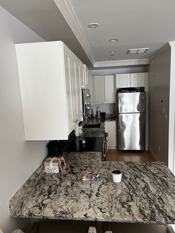 Beautiful 1 Bedroom Apartment in Back Bay! This Building is the Ground Up Re-Construction of the Iconic Residence of Oliver Wendell Holmes. Rarely available Condo Quality Luxury apartments,just steps to the Charles River. Elegantly Designed with High End Finishes throughout the Entire Building. Elevator access to all Floors. Hardwood Floors throughout,Stainless Appliances,Calcutta Bathrooms with Heated bathroom floors along with Central Heat and A/C. Available Sep. 1,2026. First,Last and Security. On Site Parking Available with heated Driveway for additional charge. *No Undergrads* MLS# 73490358