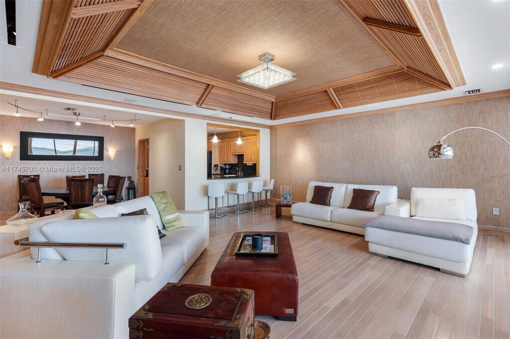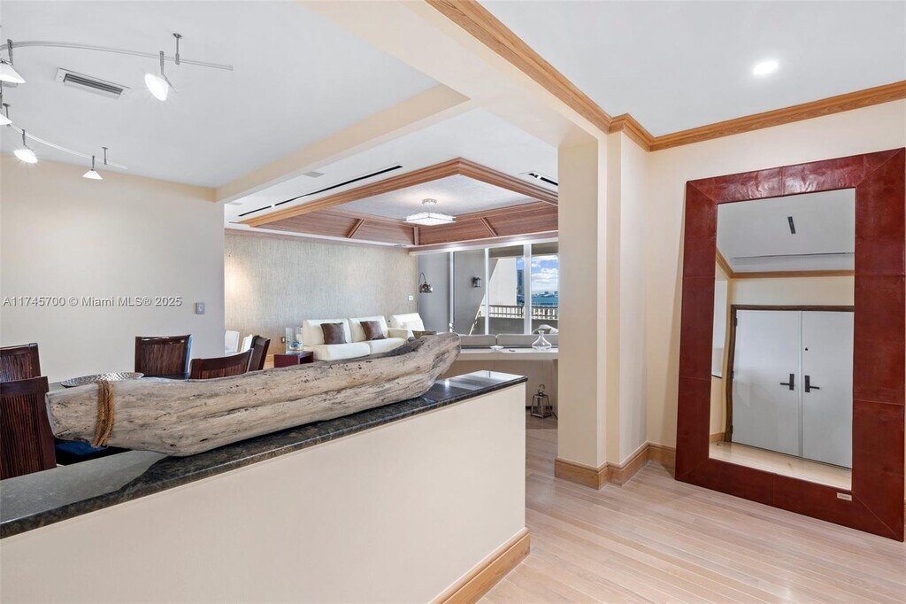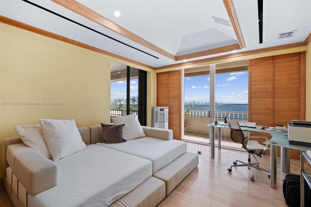 Penthouse Panorama, panoramic bay and Miami city lights and skylines views from every room all year round. This amazing Castle In The Sky has 2 bedrooms, 2 bathrooms ( 1882 SQFT living space). 2 large balconies. 9.5-foot ceilings, open kitchen, plenty of storage space. Main closets has built ins. Main bathroom has a separate jacuzzi tub, shower and double sink. Grove Isle has full services and resort-style amenities.
