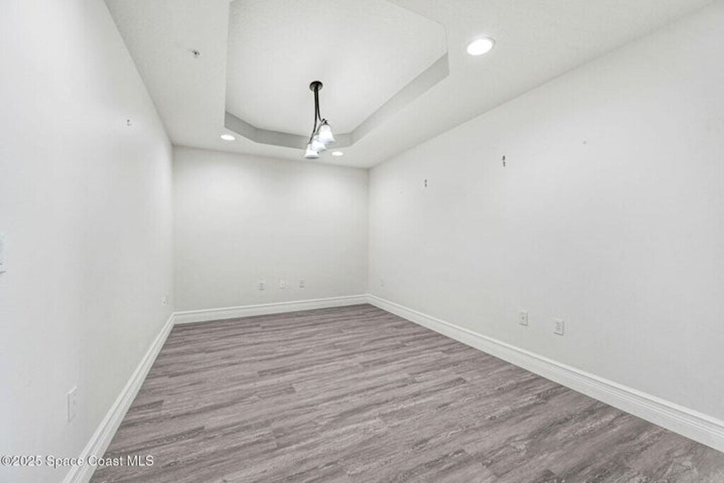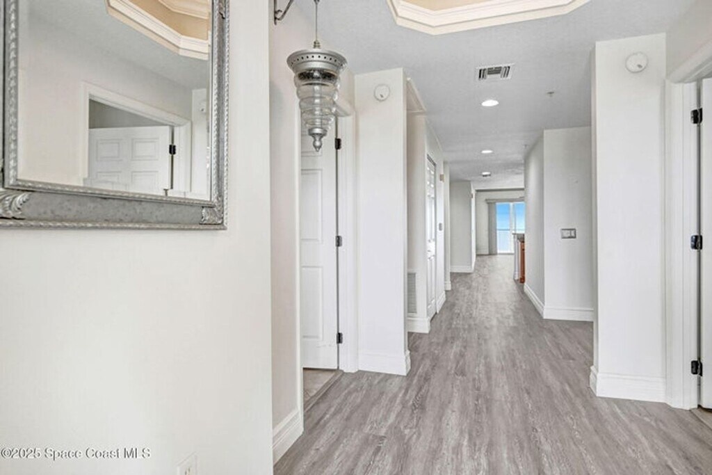Florida living at its finest! This condo sits in a PERFECT LOCATION, Sand Point Park to the west and direct eastern views to the Kennedy Space Center & the Intracoastal waterway. Sunrises are picture perfect and evenings serene. This Beacon floorplan offers custom upgrades in the breakfast nook with extended kitchen cabinets, fully remodeled primary and guest bathroom, newer flooring (no carpet), plantation shutters, tiled patio, custom blinds/valance in living room, front hurricane shutters and a storm door. The 11th floor has higher (9'4'') ceilings, giving the condo a grand feel! AC replaced in 2020. Condo comes with a one car private garage. Community offers several onsite amenities. Gated entrances, heated saltwater pool, hot tub, gym, dry sauna, tennis, and pickleball courts, clubhouse, private marina and social activities. Cable, internet & water included in the maintenance fee. Enjoy the next rocket launch from the BEST LOCATION on the Space Coast, your new condo!