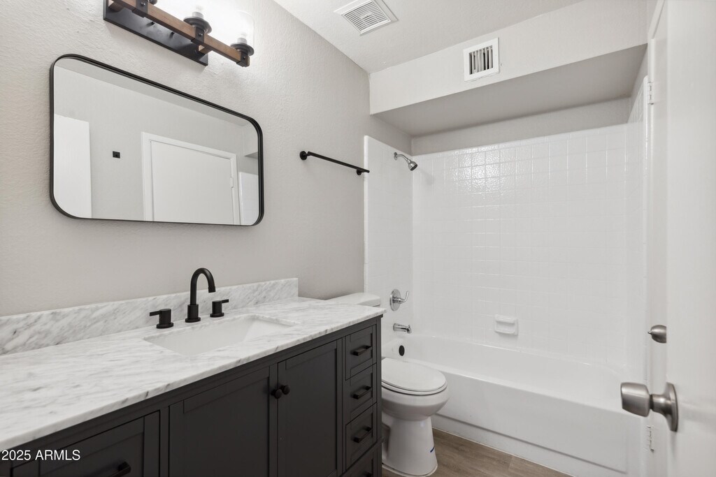 - Additional Property Details- Experience comfort and style just minutes from Downtown Mesa in this beautifully updated apartment! Featuring modern wood-look flooring and fresh neutral paint throughout,this inviting unit offers seamless design and functionality. The spacious living room showcases vaulted ceilings and a cozy corner fireplace,flowing effortlessly into the dining area. The upgraded kitchen includes white shaker cabinets,sleek hardware,and stainless steel appliances. Both generously sized bedrooms offer ample closet space and private en-suite bathrooms. Relax in your own enclosed patio or explore the lush grassy common areas,perfect for pets or play. With a community pool just steps away and easy access to the Oakland A's spring training complex,shopping,and freewaysthis home is ideal for anyone seeking simplicity,convenience,and lifestyle.