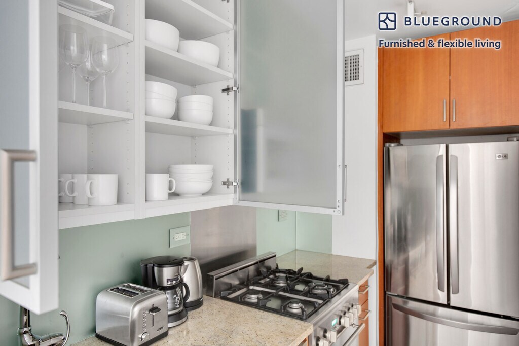 Feel at home wherever you choose to live with Blueground. You’ll love this stylish Murray Hill furnished one bedroom apartment with its modern decor, fully equipped kitchen, and cozy living room. Ideally located, you’re close to all the best that New York has to offer! (ID #NYC745) The advertised rate of $5,350/month is the lowest available price, based on a 2 month(s) and 29 day(s) stay with a move-in date of October 25, 2025. If you’re looking for a 1-year stay, the rate is $5,680/month. Rates vary depending on the duration of stay, season, and other parameters. For exact pricing and additional pricing components, please visit our website and enter your desired move-in and move-out dates. The rate is applicable when billed upfront; it can be higher if billed in multiple payments. Brokers are welcome to reach out. Were you looking for an unfurnished lease? Try Blueground instead and upgrade from unfurnished to furnished living: - Furnished at rates comparable to unfurnished - No setup or furniture costs - save thousands - Move-in ready - save time, just bring your suitcase Designed with you in mind Gorgeous furniture, fully equipped kitchen, smart TV, and a premium wireless speaker are just a few of the amenities you’ll find inside this one bedroom apartment. Ideally located in New York, you’ll find a lot to love outside as well. When you’re ready to relax, you’ll be happy to discover every Blueground bedroom comes with superior quality mattresses, luxury linens, and cozy towels. We handle everything so you can simply show up and start living. Sleeping arrangements King Bed, 70.8in/180cm Amenities Building amenities unique to this one bedroom apartment include an on-site: - Doorman - Dryer in building - Elevator - Washing machine in building - Lounge - Pets allowed Arrival and ongoing support The entire apartment is yours to enjoy! Throughout your stay, you’ll have access to our Client Experience team through the Blueground App. You can schedule additional cleanings, submit maintenance requests, and view our neighborhood recommendations with just a few taps. We’ll share all details upon confirmation of your stay. Ideally Located This furnished apartment is located in Murray Hill, a lively Midtown neighborhood. The active nightlife scene makes it increasingly ideal for youngsters and recent graduates. Simultaneously, families are relocating here as there are many good schools in close proximity. Murray Hill offers various destinations for culture-lovers. Namely, the New York Public Library and Bryant Park draw residents in from the rest of the city. Grand Central Station is only 5 minutes from Murray Hill by subway. Other things to note Building amenities may have an extra cost. This Blueground apartment has flexible lease options, allowing you to book it for one month, a year, or more. Pets are welcome, though weight limits and breed restrictions apply and may incur fees. Brokes CYOF. We take great pride in ensuring every photo displayed is shot in our own units with our actual furnishings. That said, we regularly refresh our decor and furniture arrangement, which may differ from what’s pictured.