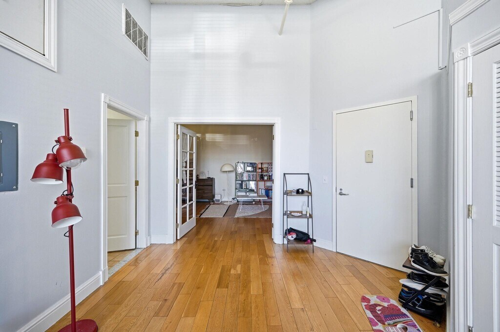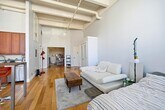 FOUNDRY LOFTS at Liberty State Park Jersey City: Oversized 1-bedroom loft apartment with 845 sq.ft. and 1-car parking included. Featuring 13' tall ceilings throughout, tons of closet space, wall of windows (9' tall). Central heating & A/C. full-sized washer & dryer in apartment. Stainless steel KitchenAid appliances include 36" bottom freezer fridge, dishwasher, microwave. Monthly rent includes 1 car parking space, as well as gym access. Minimum 1-year lease term. Gas & electric are not included. Xfinity & Verizon Fios available.