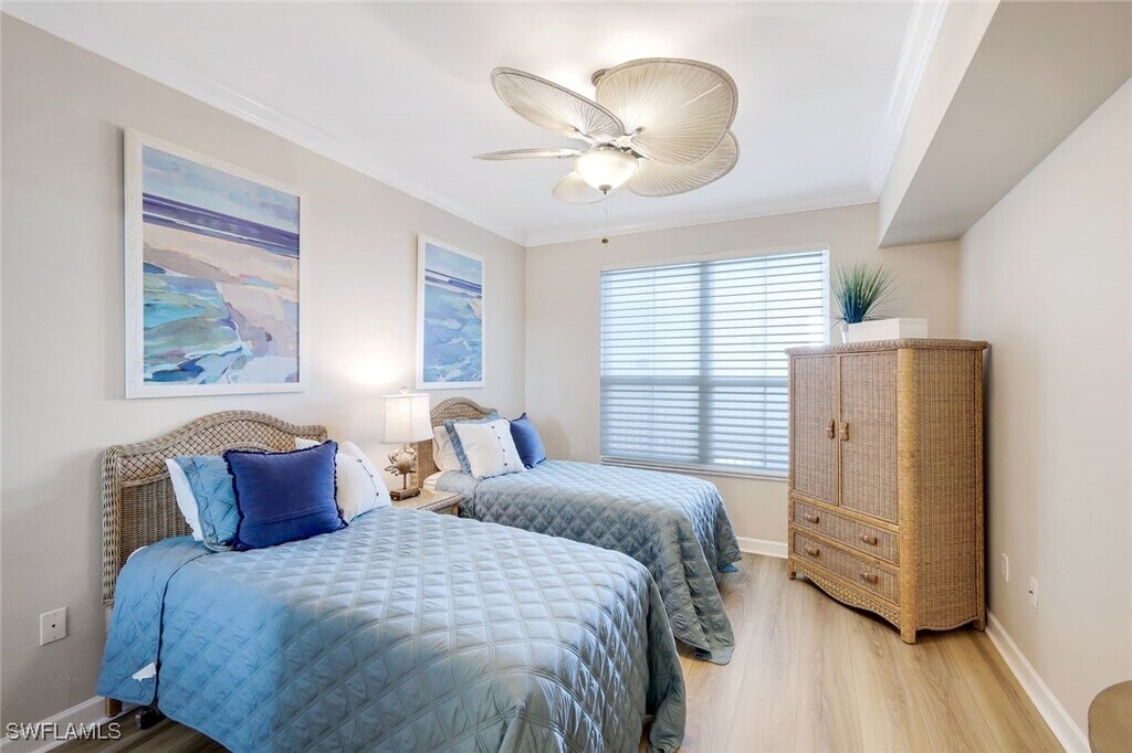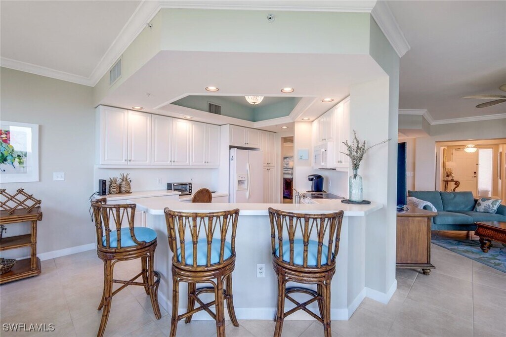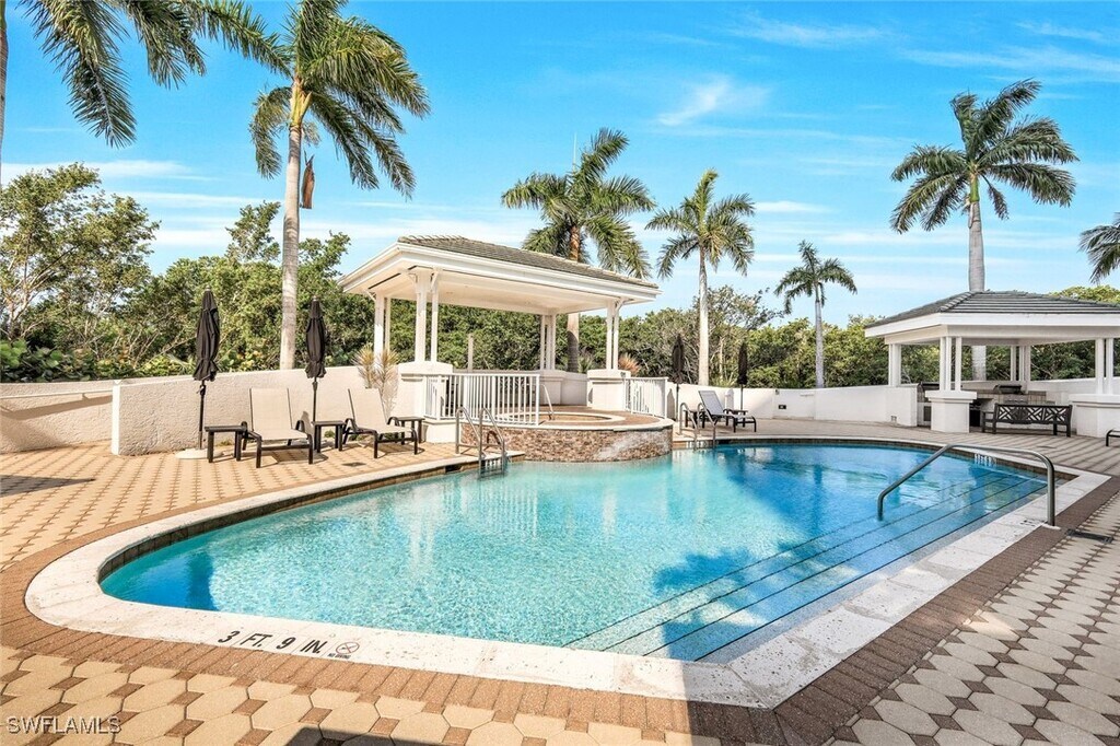 This beautifully updated condo offers a host of desirable features,including luxury vinyl tile flooring in all bedrooms,stylish new furnishings in the master suite,updated light fixtures throughout,newer kitchen appliances and ceiling fans. The vibrant artwork and beach-inspired accessories enhance the lively,coastal atmosphere. Step outside to the screened lanai,where you can unwind and enjoy views of the Gulf,Bay,and lush tropical landscaping. The Dunes presents a top-tier resort lifestyle with an impressive selection of amenities,all just steps from Vanderbilt Beach and the acclaimed Delnor Wiggins State Park. This world-class community revolves around the award-winning Club at the Dunes,offering a perfect blend of luxury and relaxation. The coastal-themed Amenities Center features a newly built 25,000 sqft clubhouse with casual dining options like the Royal Palm Room,the Sandbar,and the Tiki Bar by the pool. The spectacular pool area includes a spacious sundeck with fire pit tables and a courtyard lounge. The Wellness Center offers group fitness classes,massage and spa services,a tennis pro shop,and a recreation room. With its prime location just minutes from high-end shopping,dining,and entertainment destinations like Mercato,Waterside Shoppes,and downtown Naples,The Dunes is the perfect place to enjoy both tranquility and convenience.