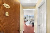 Filled with natural light and positioned on the 4th floor, this condo at The Mill features an open layout complemented by a private balcony. Hardwood flooring in a rich, warm tone runs throughout the living and dining area, framed by large windows that flood the space with natural light and open directly to the balcony, creating an airy and inviting setting. The kitchen is designed with warm wood cabinetry, neutral countertops, a tile backsplash, and full-size appliances. The bedroom is well proportioned, highlighted by a walk-in closet. A full bathroom with a tub-shower combination and a soft, neutral finish completes the interior. Residents enjoy access to a full suite of amenities including a fitness center, community room, swimming pool, tennis courts, walking and jogging paths, and a plaza deck overlooking the waterfalls. Easy access to shopping, dining, and NYC transportation completes the offering.