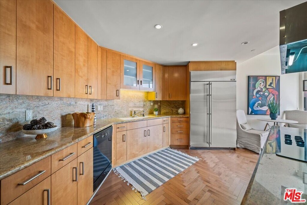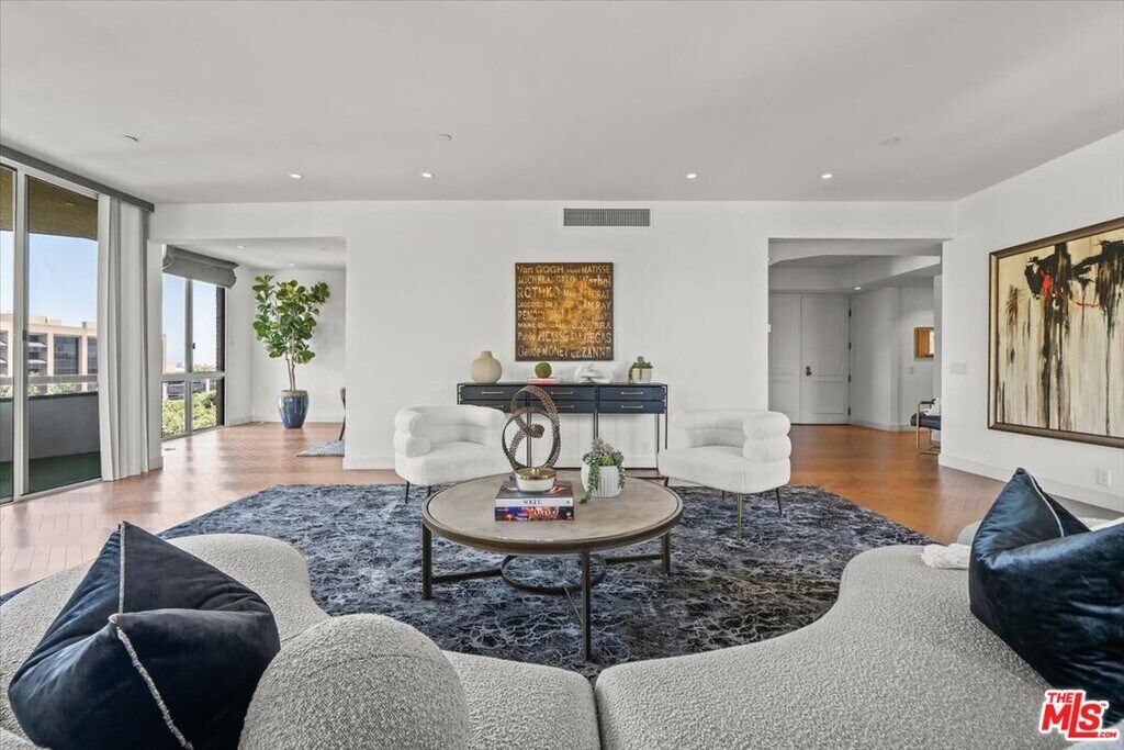 Remodeled in 2020, the residence features elegant wood flooring, soaring ceilings, recessed lighting, and classic crown moldings throughout. The spacious and thoughtfully designed layout is ideal for entertaining, showcasing a grand living and dining area with a fireplace that opens to a private terrace perfect for al fresco dining. A stylish den includes a built-in office, storage and reading nook. The gourmet kitchen is a chef's dream, complete with granite countertops, stainless steel appliances, a walk-in pantry, and a charming breakfast nook with treetop and city views. The luxurious primary suite offers a serene retreat with a sitting area, custom built-in cabinetry, and a generous walk-in closet. Fabulous Sun-Drenched Penthouse in the Coveted Four Seasons Condominiums Beverly Hills. Welcome to luxury living at its finest in this stunning southeast corner penthouse, nestled on a tranquil, tree-lined street in prime Beverly Hills. Located in the prestigious Four Seasons Con...