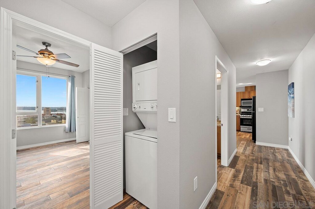 Welcome to your dream condo at La Vita Building,located in the vibrant heart of Little Italy,San Diego! This stylish 1-bedroom,1-bathroom unit on the 5th floor offers a perfect blend of modern living and urban convenience. Step inside to discover a fully updated space featuring light and bright quartz countertops complemented by sleek white cabinets. The kitchen is equipped with all-new stainless steel appliances,ensuring a culinary experience you'll love. Enjoy the convenience of an in-unit full-sized stacked washer and dryer. Relax in the cozy living room with a charming fireplace,or retreat to the spacious bedroom boasting dual closets for ample storage. Step out onto your private balcony and take in views of the serene fountain in the courtyard,a perfect spot for morning coffee or evening relaxation. The La Vita Building amenities include a well-appointed gym,a business center,and a full-sized swimming pool and spa for your leisure. You'll also have the convenience of 1 assigned parking spot in the secure garage,complete with a handy cart for easy grocery transfers. Enjoy the vibrant lifestyle that Little Italy offers,with an array of local restaurants,cafes,bars,and events right at your doorstep,including the bustling farmers market. With easy access to the 5 freeway,Balboa Park,Seaport Village,the waterfront,and the airport,this condo is perfectly situated for both relaxation and adventure. Don’t miss your chance to rent this stunning condo in one of San Diego’s most desirable neighborhoods! Please note use of AI generated photos MLS# 250046252