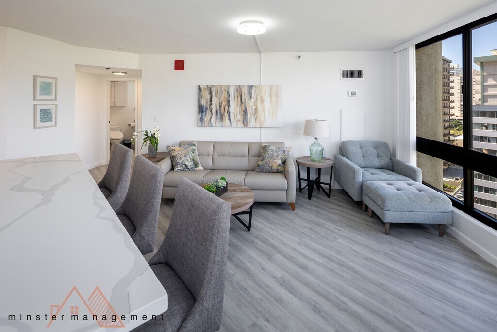 UTILITIES INCLUDED!!! Enjoy the World Famous Waikiki Beach! Liluokalani Gardens is located only 2 blocks away. This one-bedroom rental comes fully furnished; just bring your suitcase. Furnished 620 Sq Ft Living Area 1 Bedroom 1 Bathroom 1 Parking INCLUDED! Appliances: Disposal Microwave Range Refrigerator Features: Central Air Conditioning Vinyl Wood Flooring Amenities: BBQ Area Garden Walking Paths Pool Resident Manager Secured Entry 24 Hour Security Tennis Courts TENANT Pays: Internet, TV-Cable Utilities INCLUDED: Electricity, Water, & Sewer Application fee - $35 6 months to 1 year leases available NO Smoking, e-cigs, vaping, tobacco products, or any other NO Pets For more information or to schedule a showing, call 24/7 - or follow this link: Minster Management, LLC | RB-23040 1003 Bishop St., Suite 2700 Honolulu, HI 96813 Summary of Qualifications and Application Process 1. Required Information – Government-issued ID, 1 recent LES or 2 most recent pay stubs (2 years tax returns if self-employed), picture of pet (if applicable). Landlord contact information for the last 3 years. All adults aged 18+ must apply & pay a $35 app fee. 2. Security Deposit - Equal to 1 month's rent. 3. Common Reasons you may be Declined –Incomplete application, evictions, collections from landlords, a credit score below 650, insufficient income, unsatisfactory references, non-discharged bankruptcies, unqualified occupants, pets if not allowed, vehicles and/or move-in dates too far in future can also be a reason for a declined application. Any felonies of illegal manufacture or distribution of a controlled substance, felonies resulting in bodily harm or intentional damage or destruction of property, for example, “arson”. Any sexually related offenses for any time period. 4. Lease Terms - Standard lease is 1 year, but 6-month leases may be available upon request and pending the Landlord's approval. Personal and business guarantors are NOT accepted. HOA maintenance fee paid for by the owner. No Smoking, vaping, e-cigs, medical marijuana, or any other form of smoking. 5. Tenant Liability / Renters Insurance is required. 6. Application Processing Time - 2 to 3 business days. ***All information is deemed reliable but not guaranteed and is subject to change.