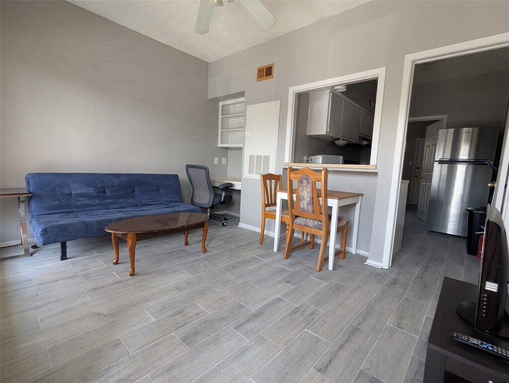 This residence features attractive cabinets and countertops, elegant wood-look flooring, and a spacious common area. The kitchen comes equipped with essential appliances, and the bedroom includes built-in storage cabinets for added convenience. Ceiling fans in both the living room and bedroom enhance comfort year-round. Parking is available on the property. Please note: pets are not permitted per HOA policy. MLS ID 8041562