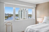 Experience Ft Lauderdale coastal living in this beachfront corner unit with private balcony and breathtaking views from every room. Condo features large primary bedroom w/ en suite and lots of closet space. Guest bedroom is very spacious with King bed and ample closets. Kitchen is well equipped and has full size in-unit washer/dryer. Living and Dining room have 180 degrees of intracoastal, downtown, beach, port and Lake Mayan! Covered parking, heated pool, Peloton-equipped gym, 2 BBQ areas, community dock (kayak/paddleboard), bike storage, 24hr security. Prime location—just steps to the widest stretch of Fort Lauderdale Beach, one block from Marina Village, one mile to Las Olas Blvd. Close to dining, shopping, marinas & airport and more! Building requires 6 month rental