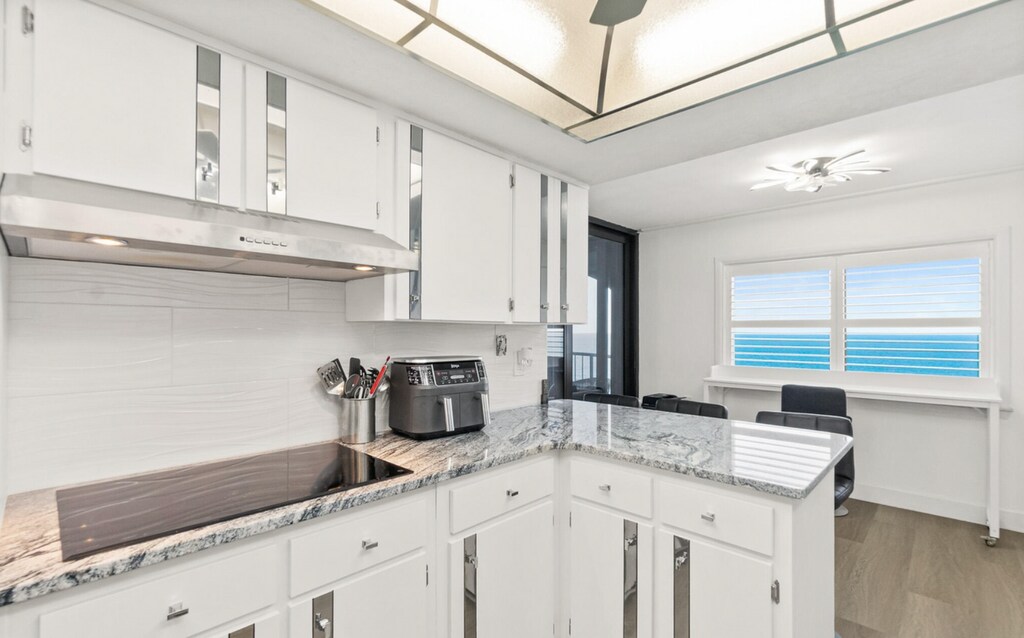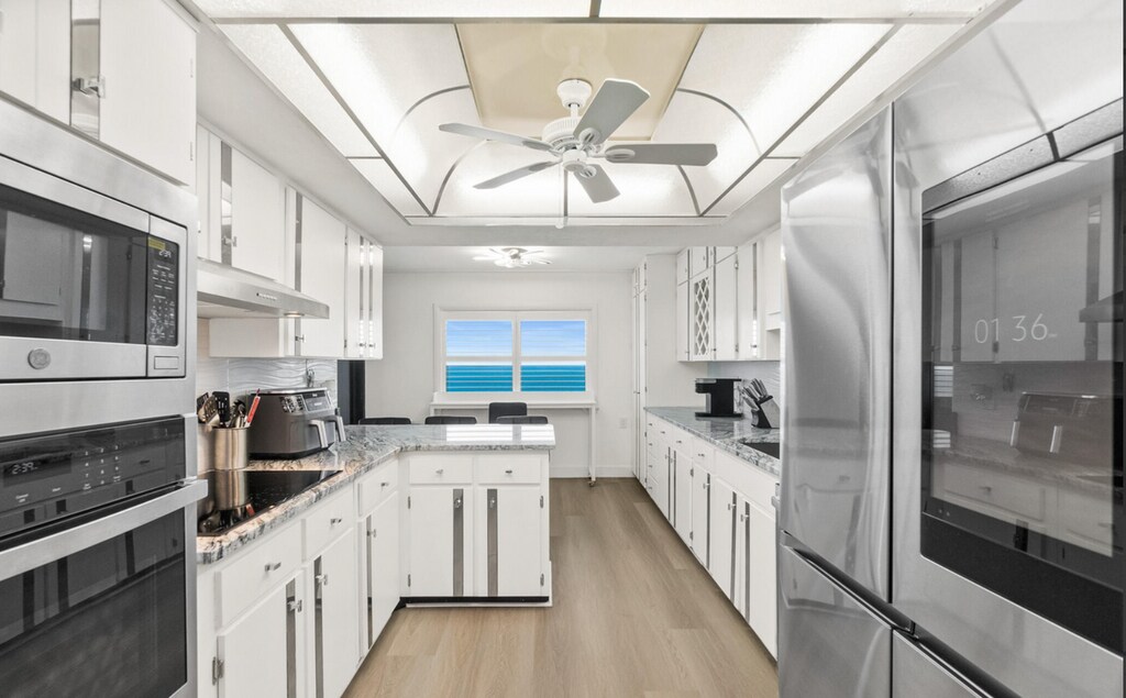 Fantastic ocean front FULLY FURNISHED condo for a desired tenant. Stunning million dollar views from every angle of the condo and every room! You will feel living in the paradise when you live in such beautiful ocean front updated modern condo. You hear the ocean waves at night for a better sleep. You sit in your balcony and lanai to enjoy the breathtaking sun rise to start your day. Updated condo includes but no limited the brand new appliances, new remodeled kitchen, 2024 hot water heater, hurricane big modern yet strong sliding doors/windows, new flooring throughout, updated both bathrooms... Grocery Publix store, Walgreen and Chase bank are just cross the street, you are living in paradise indeed. Find your new home and enjoy the paradise life. Parking is included, only utility you pay is the electricity. Application fee is $100 and it is not refundable. Community offers indoor and out door pools, sauna, golf course is just cross the street along with the community center with all entertainments. Friendly employees in the building and you will have a private elevator to the unit. It is a 12 months lease!