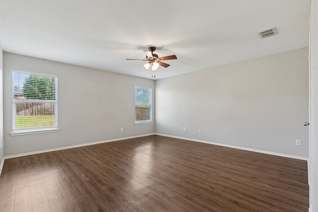 SPECIAL OFFER: $500 off first full month's rent. Charming 3-bedroom, 2-bath home in Wheeler Ridge! Spacious single-story features open-concept living with updated LVP flooring, fresh interior paint, and granite countertops in the kitchen and baths. The kitchen includes stainless steel appliances, a breakfast area, and ample cabinetry. The primary suite offers dual sinks and a walk-in closet. No carpet! Oversized fenced backyard with open patio, perfect for outdoor living. Located on a quiet street in the desirable Denton ISD near Guyer HS. Ready for immediate move-in!