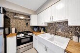 Beautifully Renovated Home with Modern Touches Throughout! This charming home features a fully renovated kitchen with a white farmhouse sink, stylish new fixtures, updated cabinet faces and pulls, sleek backsplash, stainless steel appliances, 4-burner gas range, butcher block countertops, and a convenient breakfast bar perfect for entertaining or casual dining. The first floor boasts elegant marble-tiled flooring and updated lighting throughout. Enjoy outdoor living with a private gated patio and year-round comfort with smart thermostats. The downstairs half bath has been thoughtfully updated with a new cabinet, sink, mirror, and lighting. Upstairs, the spacious primary suite includes a walk-in closet and an updated full bathroom with a stunning tiled shower, rain shower head, and a built-in medicine cabinet. HVAC replaced in 2024. Full size washer and dryer connection located in the upstairs closet. Move-in ready and full of modern upgrades this home is a must-see!