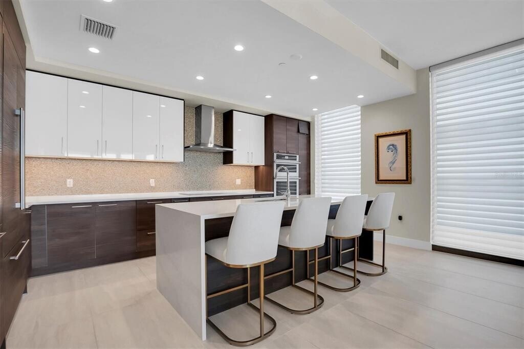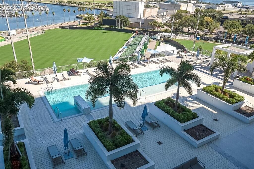 Experience elevated living at Saltaire,one of downtown St. Petersburg’s most coveted luxury high-rises,where sleek modern design is seamlessly blended with sweeping panoramic water views. This sought-after 03 Azure North floorplan showcases breathtaking vistas of Tampa Bay,the St. Pete Pier,Al Lang Stadium,Albert Whitted Airport,and the vibrant marina district,all beautifully framed by floor-to-ceiling windows with custom shades that bathe the home in natural light. Step inside to an expansive open concept layout,thoughtfully designed for both relaxed living and elegant entertaining. The Metro Collection chef’s kitchen boasts premium appliances,quartz countertops,and an oversized center island. Thoughtfully selected by an interior designer,the river rock backsplash adds organic texture and spa like warmth,serving as a beautiful focal point that balances the sleek modern finishes with natural,earthy elements. This detail carries through to the custom dry bar with built-in wine fridge,perfect for hosting guests or enjoying a quiet evening in. A seamless flow connects the kitchen to the dining and living spaces,creating an atmosphere of refined comfort. This luxurious residence features three spacious en-suite bedrooms,a versatile den,and an additional full guest bathroom. The primary suite is a true sanctuary,offering stunning water views,dual custom walk-in closets,and a spa-inspired bathroom complete with a soaking tub,dual vanities,and a large walk-in shower. Each guest suite provides generous storage and private,well-appointed baths with high end finishes and meticulous craftsmanship. A highlight of the home is the expansive private terrace,overlooking Tampa Bay and Saltaire’s resort-style pool deck,an ideal setting to enjoy morning sunrises,fireworks displays,Rowdies games,and downtown events,all from the comfort of your own home. Additional features include two highly desirable side-by-side parking spaces in the secure garage and full access to world-class amenities located on the 7th floor. Enjoy incredible waterfront views by the resort style pool,sun deck,state-of-the-art fitness center,several beautifully designed social rooms,a pet-friendly dog park with a convenient washing station,full-time concierge services,and 24-hour secured building access for peace of mind. Perfectly situated in the heart of downtown St. Petersburg,Saltaire offers convenient access to the St. Pete Pier,more than seven miles of scenic waterfront,the Saturday Morning Market,and the exceptional dining,shopping,arts,and culture along Beach Drive and Central Avenue. Don’t miss this rare opportunity to own a luxury waterfront residence in one of Florida’s most vibrant urban communities,where style,comfort,and location come together seamlessly. Schedule your showing today! MLS# TB8453817