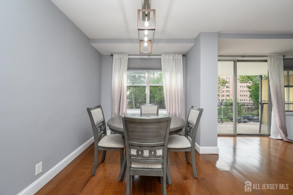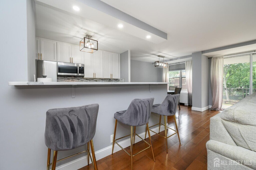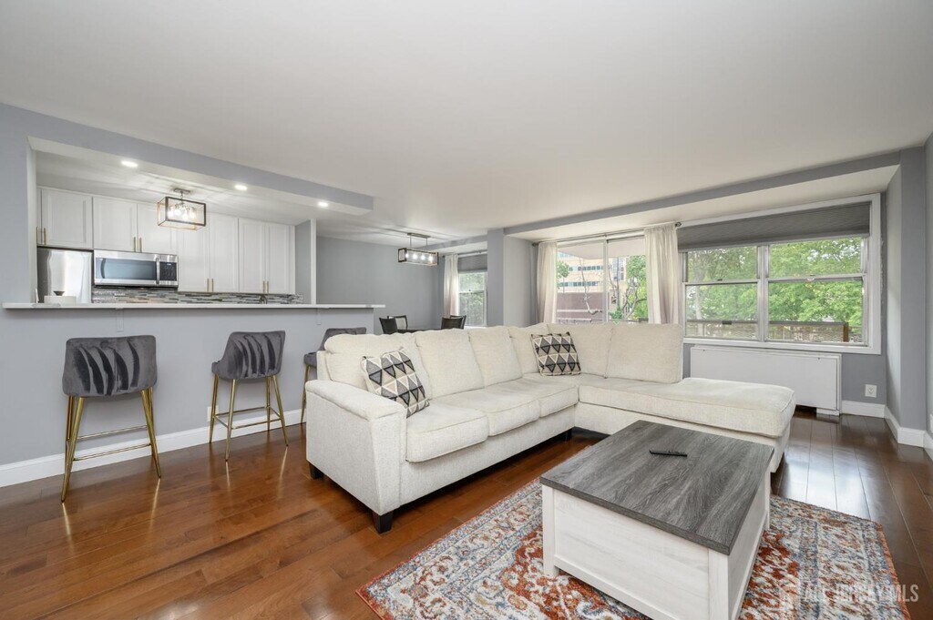 Executive House in bustling Hackensack premieres this beautiful 2 Bed 2 Bath Condo with Master Suite and private deck for rent and sale,sure to impress! Well maintained with plenty of modern upgrades in a prime commuter location,just pack your bags and move right in. This fourth floor unit offers an open layout for seamless living and entertaining,with generous room sizes,hardwood floors that shine,plenty of natural light all through,and a crisp cooling palette that is easy to customize. Gorgeous eat-in-kitchen offers sleek SS appliances,upgraded quartz counters,ample cabinet storage,delightful breakfast bar,and opens to the lovely dining area. Spacious living room holds sliders to your own private deck,great for al fresco dining or enjoying your morning coffee. Down the hall,the main full bath,along with 2 generous bedrooms with ample closets,inc the Master Suite. MBR boasts its own full ensuite bath with stall shower and walk-in closet. Addtl features inc elevator access,a luxe lobby,conference room with kitchen facilities,an outdoor pool,and shared laundry room in the basement. All conveniently located to shopping,dining,parks,schools,Hackensack Meridian hospital,major roads,the the bus line for an easy commute. This is an excellent opportunity for the first time buyer,or a great rental unit to add to your portfolio. Don't miss out! *Coming Soon - Showings begin Friday 10/3*