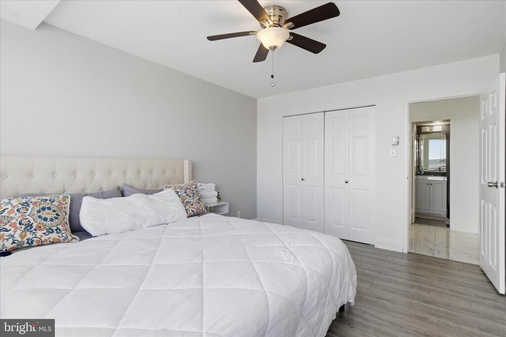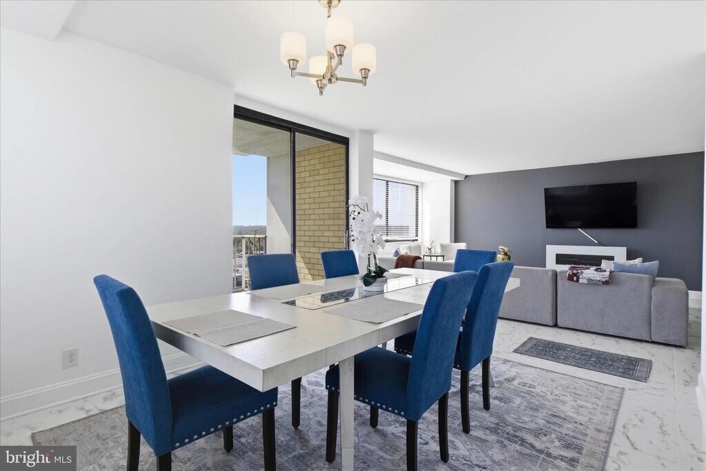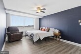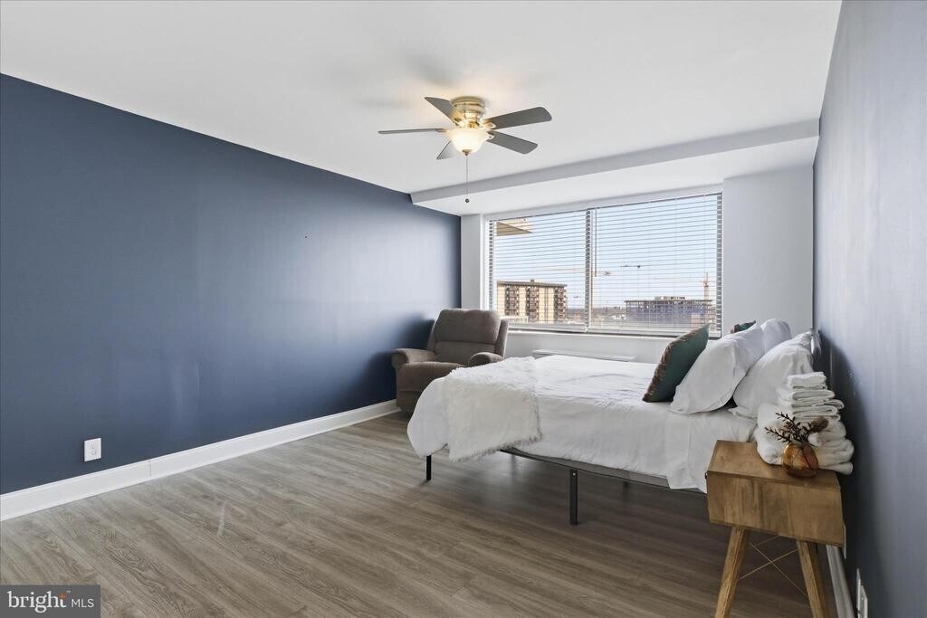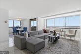 Enjoy sweeping views from this lovely 1‑bedroom, 2‑bath condo at The Fountains. This light‑filled home features wood floors throughout and a spacious living room with access to an extended balcony. The separate dining area sits just off the galley kitchen, which offers updated countertops and abundant cabinet storage. Both bathrooms have been tastefully updated with modern finishes. The large bedroom includes mirrored closet doors and generous space for furniture placement. The Fountains is a luxury high‑rise community ideally located near major highways and just minutes from charming Old Town Alexandria. Residents enjoy a full suite of amenities, including laundry facilities, concierge, multi‑use room, fitness center, sauna, outdoor pool, basketball and tennis courts, grilling areas, and picnic spaces.