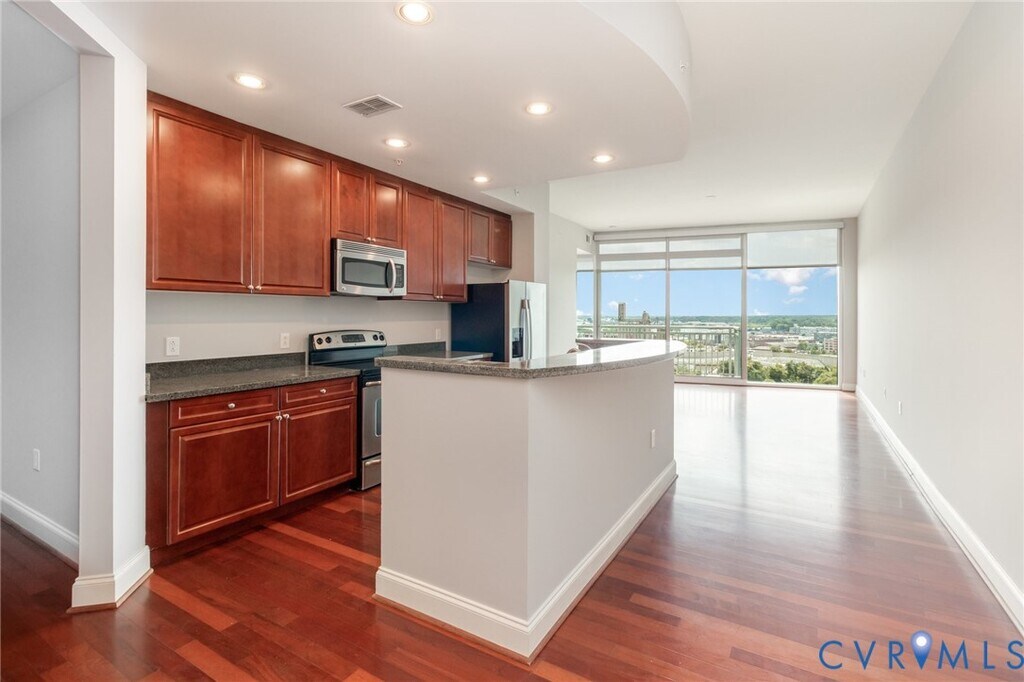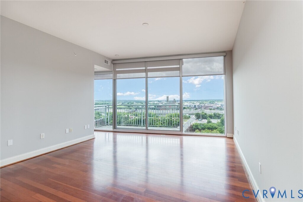 Oh My! A 1BDR with den (office or another bedroom-no closet) condo in the Exclusive Vistas on the James; 301 Virginia St,Richmond,VA 23219 with AWESOME James River View from every window on the 17th floor. This 1 bedroom with a den and 2 bathrooms,969 SF,executive,upscale condo on the 17th floor includes an assigned parking space in the covered direct access garage,access to the fitness room (while your walking on the treadmill equipped with TV,view the canal walk plaza) and 24/7 building SECURITY and front desk concierge service. See floor plan in pictures for room sizes $50 application fee per applicant,one month's rent in security deposit. Owner pays monthly condo fees,which includes access to clubhouse,common area,snow removal,exercise facility,and trash removal. Tenant pays for electricity and water. Verizon FIOS internet and some cable features are included but tenant must have account put in their name. Extra features such as sports packages,on demand movies,etc. are additional so must be in tenant's name. Vistas on the James awaits with breathtaking views from the 17th floor with floor to ceiling windows. Walk to work,restaurants,shopping,activities,parks,clubs,music venues,sporting events,museums art galleries,festivals and the Richmond nightlife. Don???t go where the action is,BE where the action is.