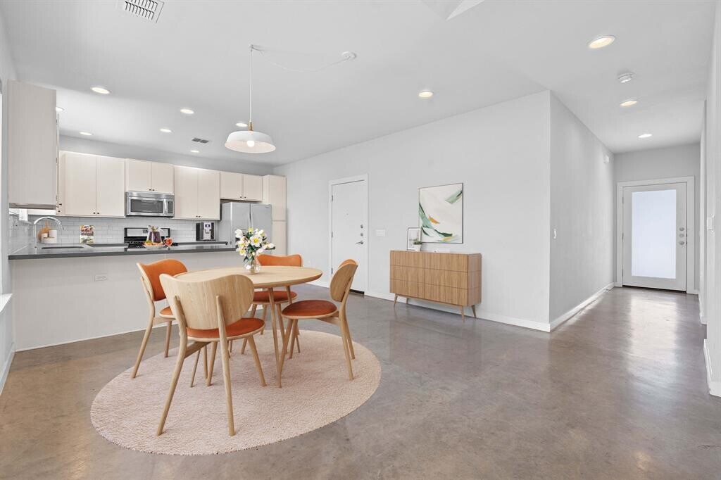 Lovely, modern 3 bedroom, 2.5 bath home in desirable South Austin location. Low maintenance. condo living at its finest with no shared walls, private backyard & 2-car garage. Beautiful concrete floors on main level & soaring ceilings with tons of natural light! Gorgeous kitchen with Quartz counter tops, glass tile backsplash, stainless appliances & breakfast bar. Half bath on main level. Spacious primary bedroom suite with large walk-in closet, dual vanities & walk-in shower. Large secondary bedrooms. Solar panels & tankless hot water heater for added efficiency. Fully fenced backyard is maintained by HOA. Google fiber available. Easy to access to South Congress, I-35, Mopac, airport & downtown ATX!