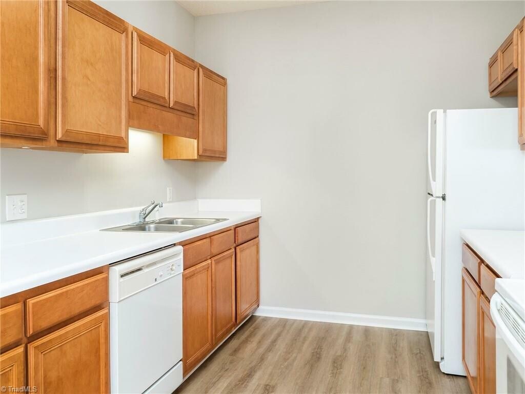 Spacious 3 Bedroom, 2 Bathroom condo located on the 3rd floor of Windemere Condominiums in Burlington. Living room features LVP flooring, cathedral ceilings, gas log fireplace with patio door that leads to a private balcony with wooded views and a small storage room. Kitchen includes ample cabinet space, stove, refrigerator, dishwasher and built-in microwave. Dining area with pantry. Laundry room with storage space and electric washer/dryer hookup. Large bathrooms with modern updates and fixtures. Primary bedroom has LVP flooring and a walk-in-closet. Condominium complex does have elevators for tenant use. Gash heat, central A/C. Water & trash included in rent. NO INDOOR SMOKING! Pets Negotiable.