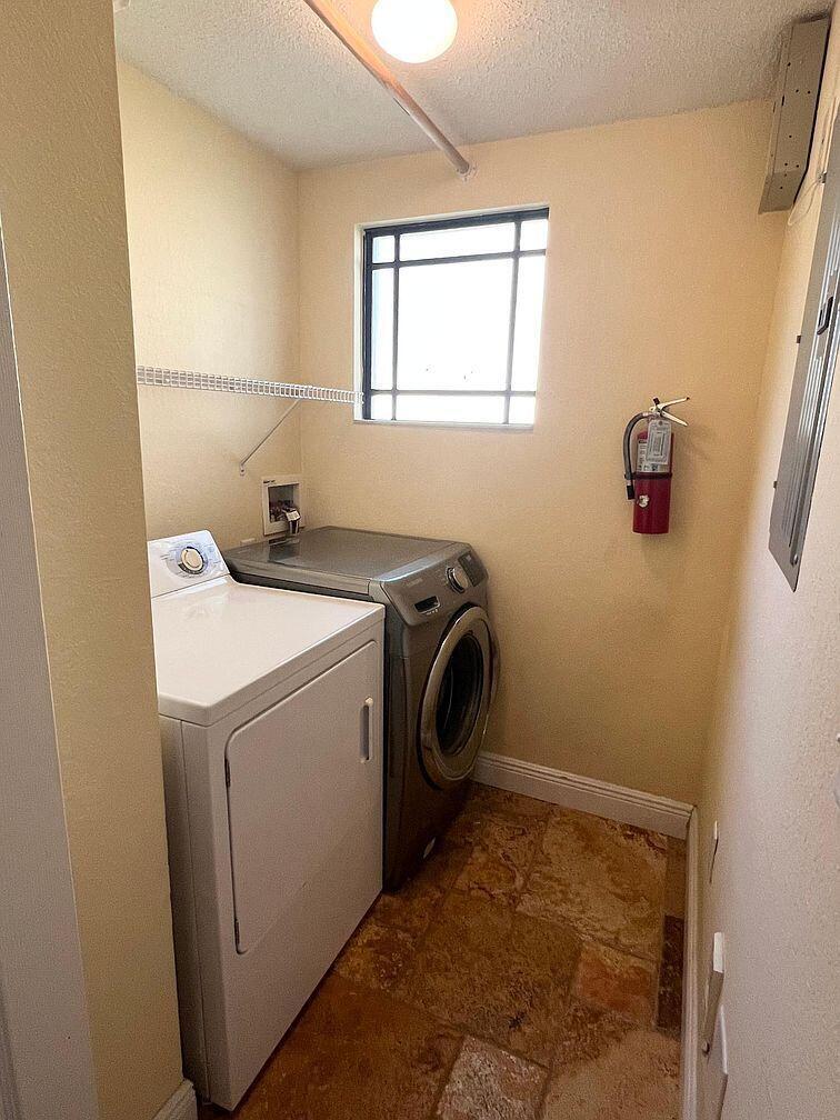 Perfectly maintained one bedroom one bathroom condo in perfect location in Palm Beach Gardens! This 768 sqf condo features open kitchen concept with lots of storage space!! Laundry room inside of the condo with Full Washer and Full dryer. The condo is freshly painted in all white. Wood laminate floor throughout !! Large, screened balcony overlooking to the Court Yard!! Rental includes water & sewer, access to swimming pool, racquet ball, tennis, steam room, gym, business center and club house.