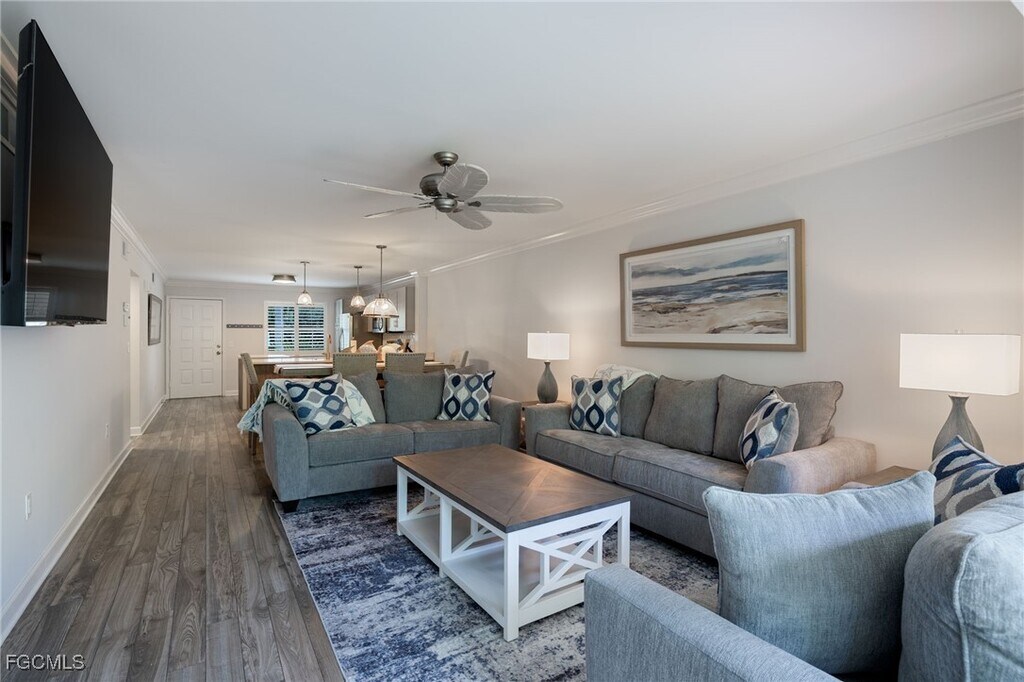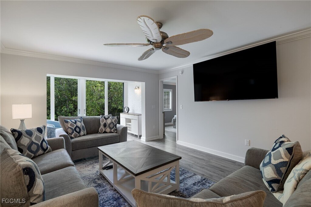 Welcome to your serene escape in this bright and airy 2-bedroom,2-bath condominium,ideally located on the second floor to capture beautiful views of lush tropical landscaping. This inviting residence offers an open and versatile layout perfect for comfortable living and entertaining during your stay in paradise. Step into a sunlit living area featuring neutral tones and seamless flow throughout. The modern kitchen boasts stainless steel appliances,pristine white cabinetry,and granite countertops—ideal for cooking or enjoying casual meals in the cozy eat-in space surrounded by natural light. The spacious master suite offers a peaceful retreat with a walk-in closet and refined crown molding details,while the guest bedroom ensures comfort and privacy for family or visitors. Both bathrooms and the kitchen feature stylish tile flooring,combining elegance with easy maintenance. Relax on the screened-in balcony,the perfect spot for morning coffee or evening unwinding as you take in the tranquil scenery. Tenants enjoy access to a sparkling community pool,boat dock,and community clubhouse—plus BBQ and picnic areas for those perfect Florida afternoons.Whether you’re seeking a seasonal getaway or a long-term rental,this beautifully maintained condo offers the ultimate Naples lifestyle—where leisure,comfort,and convenience meet.
