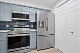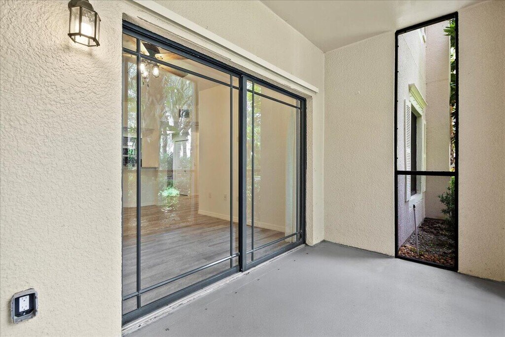 Beautifully updated and upgraded two bedroom and one bathroom ground floor condo in San Matera. Newer appliances, including the laundry, upgraded floors, cabinets, countertops, custom trim, light fixtures and more. Walk out the door to enjoy a landscaped and peaceful green space or enjoy the views from the covered and screened patio space. San Matera is ideally located minutes from beaches, interstates and entertainment while maintaining a private resort feel when home or enjoying the impressive community amenities.