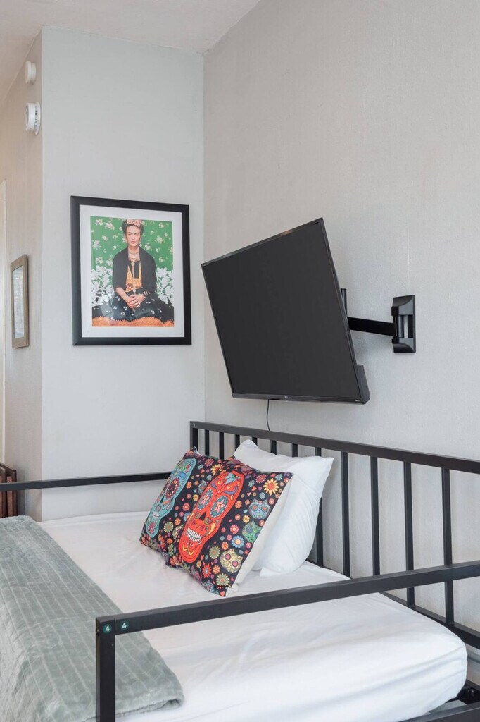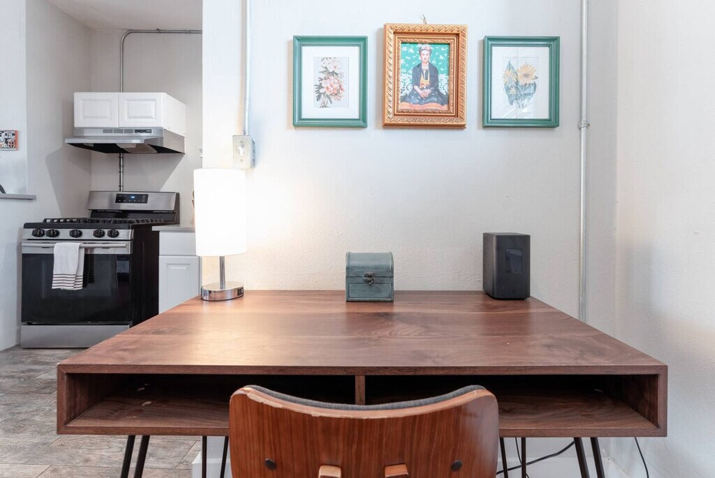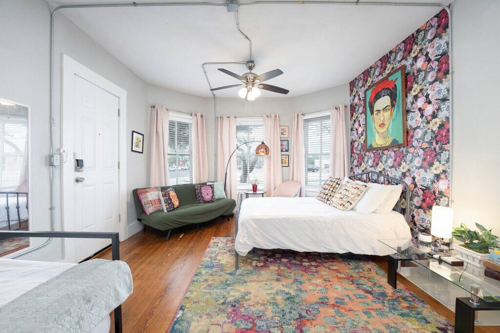 Discover Casa Khalo, a pet-friendly one-of-a-kind haven in Corpus Christi dedicated to the iconic Frida Khalo. This stylish studio, located on the first floor in downtown, boasts a beautiful brownstone exterior near bars, restaurants, and business centers, making it the ideal choice for travelers. The home accommodates up to 4 guests and features a full kitchen, a queen-sized bed, and a twin day bed with a trundle. Immerse yourself in the vibrant energy of CCTX while enjoying the unique ambiance of Casa Khalo. Step inside this first-floor studio unit and experience a delightful space that offers both comfort and convenience. The fully furnished apartment features a well-equipped kitchen with a stove, oven, full-size fridge, pots, pans, and utensils for your cooking needs. Enjoy your meals on the small bar area with two stools or unwind in the living room, complete with a Smart TV and a cozy sofa that can also accommodate an extra guest. Casa Khalo Studio takes care of your every requirement, providing a fully stocked coffee bar, linens, towels, and a dedicated workspace with a desk and chair. The sleeping arrangements include a comfortable queen bed with a nightstand, a twin day bed with a roll-out trundle bed, and ample closet space for storage. In the bathroom, you'll find a refreshing shower along with a selection of fully stocked shampoo, conditioner, and body wash. Bath towels, washcloths, and hand towels are also provided. Pets are welcome with a fee of $120 per stay per pet, with a maximum of 2 pets allowed. We can accommodate either 1 large animal (50-75 lbs) or two small animals (under 40 lbs). Pets must be kenneled and house trained. All pets must be leashed at all times when outside of the home. Pick up and properly dispose of all pet waste in our garbage receptacles outside of the home. Pets must be kept off all furniture, bedding, sheets, and blankets or a minimum cleaning fee of $100 will be assessed. Guests are responsible for any damages or injury caused by their animals. Emotional support animals are not exempt from this pet policy and pet fees must be paid. Beyond the comforts of Casa Khalo Studio, you'll discover an incredible location that offers an array of experiences. Walkable to Corpus Christi beaches, you can easily soak up the sun or take a leisurely stroll along the shoreline. Downtown's vibrant scene awaits, with numerous restaurants, bars, and cafes such as Lucy's, Executive Surf Club, and Dokyo Dauntaun just steps away. Enjoy the nearby biking and running trail along the Seawall, providing breathtaking views for sunrise or sunset outings. While living here, you may occasionally experience foot traffic and siren noises due to our close proximity to downtown and major facilities like the police station, fire station, and hospital. These sounds are a natural part of life in a bustling, central area. However, we've ensured that your comfort is not compromised. Once you've finished exploring the city, you can return to your cozy, fully equipped home where you can prepare meals in your kitchen and unwind while streaming your favorite TV services. No smoking allowed, subject to a $200 fine for violations and immediate eviction. No parties or events allowed, with a maximum of 4 guests. Violations will result in immediate eviction. Check-in is any time after 4pm and check-out is at 11am. A $75 initial late fee applies for guests that do not check out by 11am and $40 per hour thereafter. Trash must be placed in the provided trash receptacle located in back of property. $55 extended stay (6 or more nights) cleaning fee every week will be charged. Guests may not have any personal mail, items, or packages delivered to the home without express written consent of the host. Any items left behind will incur a minimum trip fee charge of $25 plus the cost of shipping. Includes a dedicated workspace with a desk and chair. A laptop computer is not included. Registration Number: 306600 [SI]