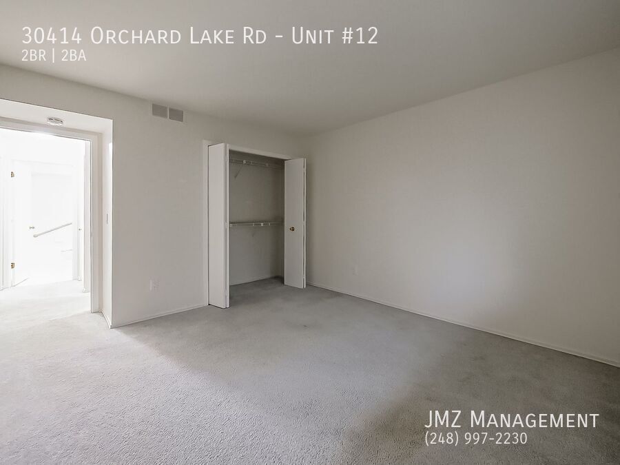 Welcome to 30414 Orchard Lake Road – Unit #12, a beautifully designed 2-bedroom, 2-bathroom condo located in the desirable community of Farmington Hills, Michigan. Step into a bright and inviting living space where natural light fills the open layout, creating a warm and comfortable atmosphere. The spacious living and dining areas flow effortlessly together, making the home perfect for both relaxing evenings and entertaining guests. The well-appointed kitchen offers generous cabinet space and a practical layout that makes everyday cooking simple and enjoyable. Just off the main living area, you’ll find two comfortable bedrooms, including a private primary suite with its own full bathroom, providing the perfect retreat at the end of the day. A second full bathroom adds convenience for residents and guests alike. Situated along the convenient Orchard Lake corridor, this unit places you close to shopping, dining, parks, and major roadways, offering easy access to everything that makes living in Farmington Hills so appealing. ALL SHOWINGS MUST BE ACCOMPANIED BY A REAL ESTATE AGENT, IF YOU HAVE AN AGENT PLEASE CALL THEM TO SCHEDULE, IF YOU DO NOT HAVE AN AGENT ONE CAN BE PROVIDED FOR YOU. SHOWINGS CAN NOT BE SCHEDULED ONLINE. PLEASE CALL 248 nine two seven 24 seven zero SO WE CAN CONNECT YOU WITH A REAL ESTATE AGENT. Please visit our website at jmzmanagement . com to apply or find additional information.