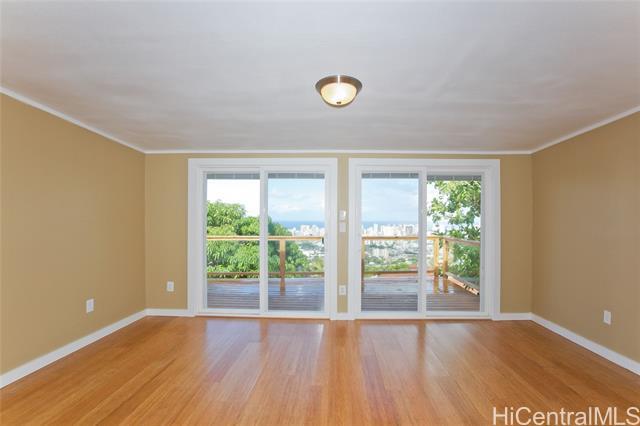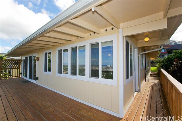 Welcome to a slice of paradise in prestigious St. Louis Heights neighborhood. A spacious air conditioned modern top-unit duplex offers the perfect blend of modern elegance, breathtaking views, and unparalleled convenience. Quiet location. Step into a sleek, contemporary kitchen featuring a flat-top stove, double oven, built in microwave, & abundant cabinet space. The open-concept layout seamlessly connects the kitchen to the dining and living areas, making it ideal for entertaining or relaxing. Full size washer & dryer inside. large New refrigerator . Sweeping panoramic views of the Pacific Ocean,& the dazzling Honolulu skyline from the expansive deck, savor your morning coffee or enjoy the Hilton fireworks every Friday night. The main ensuite bedroom is a true retreat, complete with a bonus room perfect for a home office or reading nook, all with stunning city and water views. A spacious walk-in closet with built-ins and natural light. Situated in cool serene neighborhood, offers peaceful tranquility while being conveniently located in town. 15 minutes to the beach. 1.5 miles from freeway entrance and University of Hawaii. Split AC,PV electric, car charger. Electricity separately metered. Explore the vibrant food scene & charming shops of Kaimuki @ base of hill. 1 mile to UH or Freeway. One of Honolulu’s most sought after neighborhoods. Call agent to view.