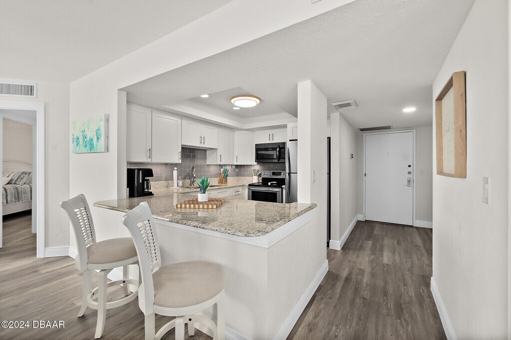 This stunning vacation rental condominium boasts over 100,000 in exquisite upgrades,including a brand-new kitchen and baths. Offering 1,141 square feet of beautifully designed space with a split floor plan and coveted southern exposure,this 2-bedroom,2-bathroom retreat combines elegance,comfort,and coastal charm. The upgraded kitchen is a standout feature,complete with soft-close white cabinetry,granite countertops,and a glass backsplash reminiscent of ocean waves. Stainless steel appliances,recessed lighting,and a smooth ceiling enhance the upscale ambiance,while the oversized island serves as the perfect spot to enjoy your morning coffee. The living room adds to the coastal charm with a shiplap accent wall,luxury vinyl flooring,and clean,contemporary lines that create a welcoming and stylish atmosphere. The primary bedroom offers breathtaking ocean views,recessed lighting,a contemporary ceiling fan,and both a spacious walk-in closet and a second closet. The guest bedroom,equally luxurious,feels like a second primary suite with serene décor and modern lighting. Both bathrooms are fully updated,with the primary bath featuring a spa-inspired glass shower equipped with a rainfall showerhead,multi-jet shower tower,and a bench seat. The elegant design includes Carrara white marble hexagon mosaic tile flooring and a subway tile surround. Beyond the condo's interior,residents enjoy a host of resort-style amenities. These include a fitness center,social and billiard rooms,sauna,large pool with a sun deck,private beach access,and secure underground parking for one car,with additional spaces available on the upper deck. The community also offers outdoor grills,shuffleboard courts,party and game rooms,a hobby shop,and a library. Conveniently located across the street from city offices,emergency services,Publix,Walgreens,and a community center,the condo is just steps away from the Oceans Executive Golf & Tennis Club. This is a 2-month minimum rental in a pet-free building,offering the perfect coastal escape for those seeking luxury,convenience,and relaxation.