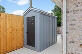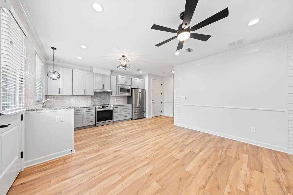 No detail was spared in this beautiful coastal modern inspired build. This 2bd/2ba home is emphasized with LVP floors, soft close cabinets and drawers, touch screen oven control, space saving pocket doors, rain shower bathroom fixture, recessed and flush mount lighting creating an open and inviting space. The stately accents bring custom home vibes with textured wall borders, crown molding, counter to ceiling kitchen tile, elevated outlets for hidden cord entertainment, built in laundry shelves, laundry cabinets, and a stainless-steel folding table. Custom built banisters and brick steps meet you as you exit into the very private courtyard boasting an expansive privacy fence with touches of garden rock to compliment the space and a solid shed that matches the house in style and color for