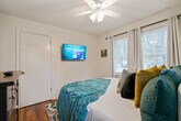 Unwind in comfort at this newly updated single-story 3-bedroom, 2-bath home, ideally located just minutes from downtown Woodstock’s best dining, shopping, and entertainment. Whether you're staying for a few nights or a few months, feel at home in this fully move-in ready home. The home features a master suite with a king-size bed, Smart TV, and private bathroom featuring a walk-in shower, as well as two queen bedrooms, each with Smart TVs and fresh linens. Relax in the cozy family room with a Smart TV mounted over the fireplace. The fully equipped kitchen has stainless steel appliances and cooking essentials, and the dining area seats 4 guests. There is also a laundry closet with a washer and dryer, and high-speed Wi-Fi throughout. Pets are welcome with applicable fees. Nearby attractions include Sequoyah Park Disc Golf Course, Ansley Golf Club at Settindown Creek, Atlanta National Golf Club, White Columns Country Club, and The Golf Club at Bradshaw Farm. This is a non-smoking property and no events are allowed. [SI]