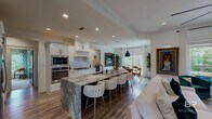 Your private gated Ono Island oasis awaits! Nearly new,4-bedroom,3.5-bath blends city sophistication w/tranquil beach living. Fully furnished for turnkey experience with a pool table. Clean,modern design & open floor plan,highlighted by custom-painted doors for a sophisticated touch. An entertainer's dream,featuring a stunning dolomite stone waterfall kitchen island overlooking the living/dining area w/bar nook perfect for unforgettable gatherings. Community pool,gym,tennis/pickleball/basketball courts just a block away 24/7 security,boat ramp & more. Welcoming deck extends to pavered patio for al fresco dining. Luxurious primary suite w/tranquil soaking tub & expansive walk-in closet. 2 additional beds w/en-suite baths.