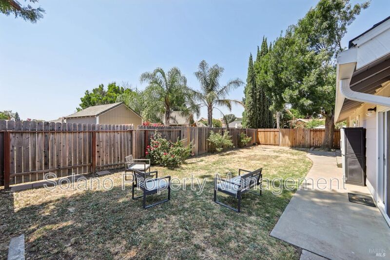 This charming 3-bedroom, 2-bath home welcomes you with classic curb appeal, featuring a lovely picket fence and a front security-gated door. Inside, an open floor plan, vaulted ceilings, and luxury vinyl plank flooring create a bright and airy living space. The inviting family room includes a cozy wood-burning fireplace and flows seamlessly into the formal dining area. The updated kitchen is equipped with stainless steel appliances, a gas range, granite counters, and ample storage. Sliding glass doors from both the kitchen and the primary bedroom provide easy access to the spacious backyard, complete with a covered patio and private fencing—perfect for outdoor entertaining. The primary suite offers dual sinks, a slate shower, while the updated hall bathroom has a classic claw-foot tub, and adds comfort and convenience for family or guests. Additional highlights include dual-paned windows, ornate lighting, an indoor laundry room, and a full garage. Located in the desirable Travis Air Force Base school district and close to shopping, restaurants, and commuter routes, this home offers exceptional comfort, style, and convenience. adds comfort and convenience for family or guests. Additional highlights include dual-paned windows, ornate lighting, an indoor laundry room, and a full garage. Located in the desirable Travis Air Force Base school district and close to shopping, restaurants, and commuter routes, this home offers exceptional comfort, style, and convenience. AVAILABLE TO VIEW VIA TENANT TURNER MONDAY-FRIDAY, 9AM-5PM - SIGN UP AT THE LINK Some terms: *Application fee waived for military personnel. *Upon approval, tenants must provide renter's insurance. *The deposit is based on approved qualified information. *Pets Negotiable. *Price and availability are subject to change without notice. *Not responsible for what third party websites post about homes we have for rent. *Properties are in as is condition. Qualifications: 650 or above credit score for all adults over the age of 18. Make 2.5 or 3x the amount of rent depending on the rental. No smoking in the unit, no evictions, and no unpaid utilities. No unpaid payments with previous rentals. No bankruptcies in the past 5 years.
