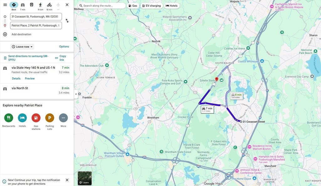 Time and distance from 31 Cocasset St.