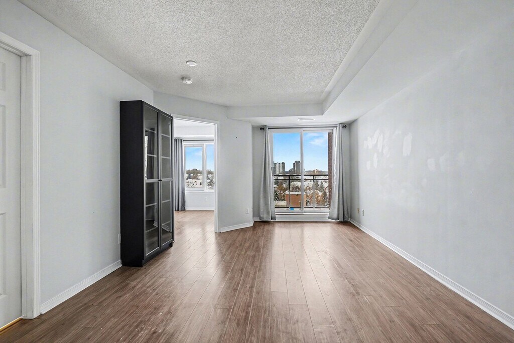 Discover comfortable condo living at 310 Central Park. This well-kept 1 BEDROOM + DEN , 1-bathroom suite offers a thoughtfully designed layout and is available for immediate occupancy. The flexible den works beautifully as a home office or guest area, while the open living and dining space extends to a private balcony-perfect for unwinding or enjoying a quiet morning. The unit features laminate flooring, a tiled entryway, and a modern kitchen complete with sleek cabinetry, a breakfast counter, and full-size appliances including a fridge, stove, and dishwasher.The sunlit bedroom provides a comfortable retreat, and the suite also includes in-unit laundry, air conditioning, and a STORAGE locker. Residents enjoy access to well-maintained building amenities such as elevators, a fitness room, and a party space. Ideally situated near shopping, dining, transit, major highways, post-secondary institutions, hospitals, and nearby trails, this move-in-ready condo offers convenience, comfort, and an excellent urban lifestyle. Available NOW! PARKING EXTRA $75 HYDRO EXTRA $60 AVAILABLE NOW!