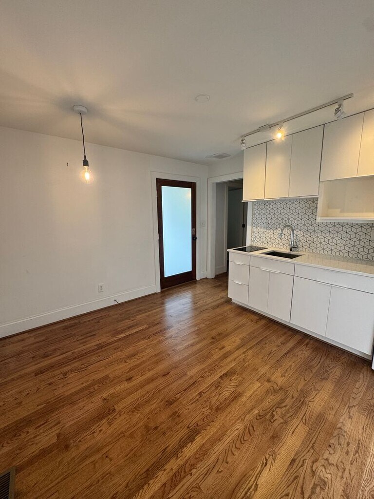 Don’t miss this beautifully renovated 2-bedroom home located just steps from Historic Oakwood in Raleigh. The inviting open-concept main level features elegant finishes and a thoughtfully designed layout—perfect for entertaining or relaxing at home. The spacious kitchen boasts a striking farmhouse sink, a charming antique stove/oven, and a modern stainless steel refrigerator, blending vintage character with contemporary convenience. Gorgeous hardwood floors run throughout both levels of the home, adding warmth and timeless appeal. Both full bathrooms have been completely updated with stylish, high-quality finishes. Just one block from Oakwood Cemetery, this home offers easy access to downtown Raleigh while being nestled in one of its most treasured historic neighborhoods. Washer/dryer hookups. Utilities included.