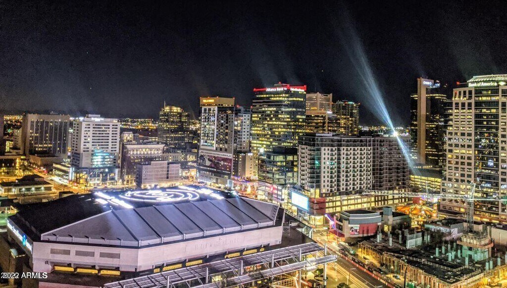 Modern urban high-rise lifestyle in the heart of the nation's fastest growing city,steps from PHX light rail! Over 1400 ft ALL UTILITIES AND INTERNET INCLUDED! Property nicely upgraded with hardwood floors granite kitchen with bar overhang,aluminum frame floor to ceiling windows,2.5 baths and more. Desired NW corner lot location with wraparound balcony for those beautiful AZ sunsets and city light views! Amenities; 24-hr desk/guard,underground parking,24-hr fitness center with dry spalocker room,5th floor heated pool/hot tub,storage,beautiful rooftop terrace clubhouse with fire pit and more.