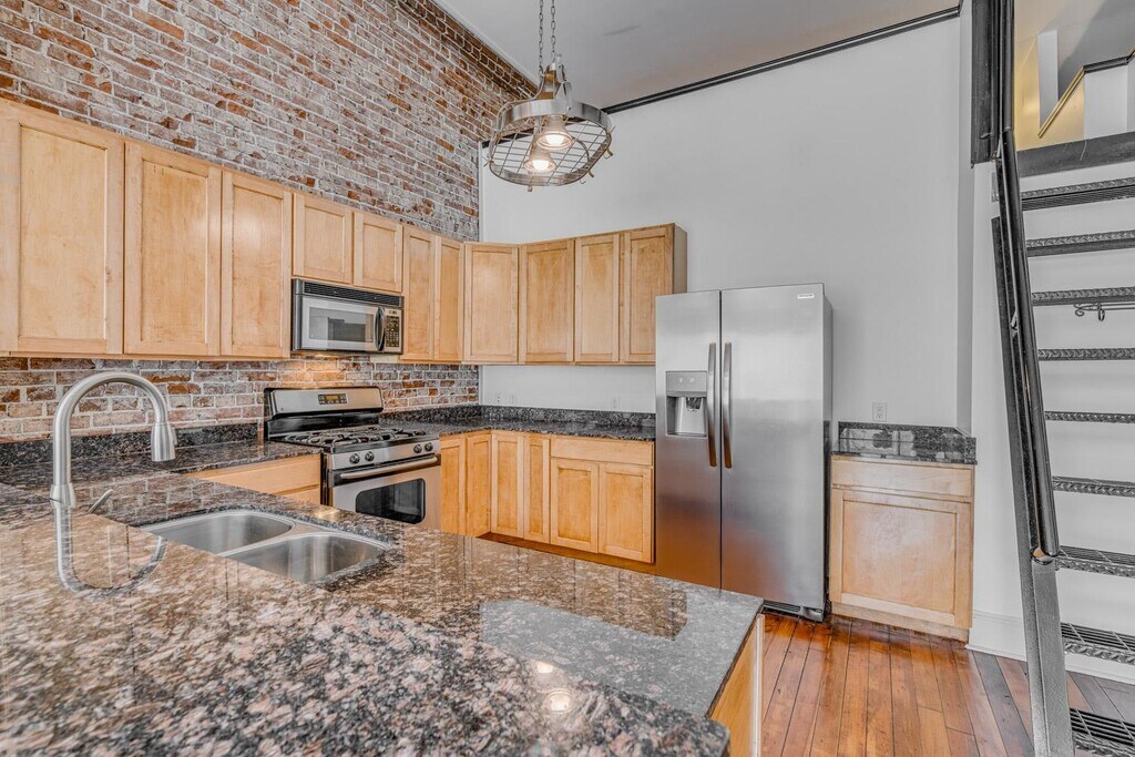 Location, ceiling height, 118 yo exposed brick walls, HUGE walk-in closets, assigned parking in an attached, secured garage — it's hard to decide what the best thing about this condo is! Come take a look and decide for yourself. This property features a spacious 1-bedroom, 1.5-bathroom layout with a total of 1,544 square feet including a loft space offering versatility. The bedroom includes two walk-in closets, the bathroom is equipped with a double vanity and modern fixtures, and the half bath adds convenience for guests. Amenities include air conditioning, a washer and dryer, and a dishwasher for added comfort and ease. Located on the main floor of a historic building w/ 6 units, you’ll have easy access to the unit from the main entrance to greet guests or unload groceries. On rainy days you’ll love pulling into your reserved parking space in the secured, basement level garage and ascending one flight of internal stairs to reach your front door. MLS# 10208949