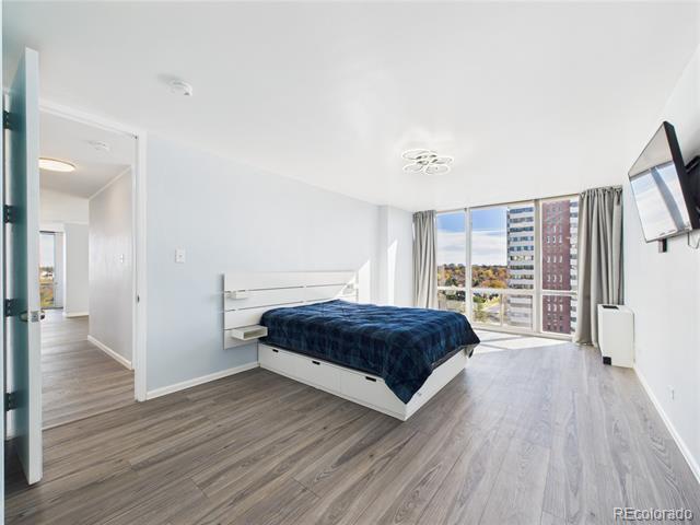 Light filled corner unit with floor to ceiling windows overlooking Cherry Creek and the landscaped pool area. This updated 2-bedroom, 2-bath condo features an open floor plan, laminate flooring, and spacious living and dining areas. The primary suite includes a walk-in closet, and the second bedroom is perfect for guests or a home office. Enjoy resort-style amenities: a seasonal pool, fitness center, laundry room, BBQ terrace, and secure underground parking. Unbeatable location with direct access to Cherry Creek Trail and just steps from Cherry Creek Shopping Center’s dining and retail. Available now! Condominium MLS# 4763320