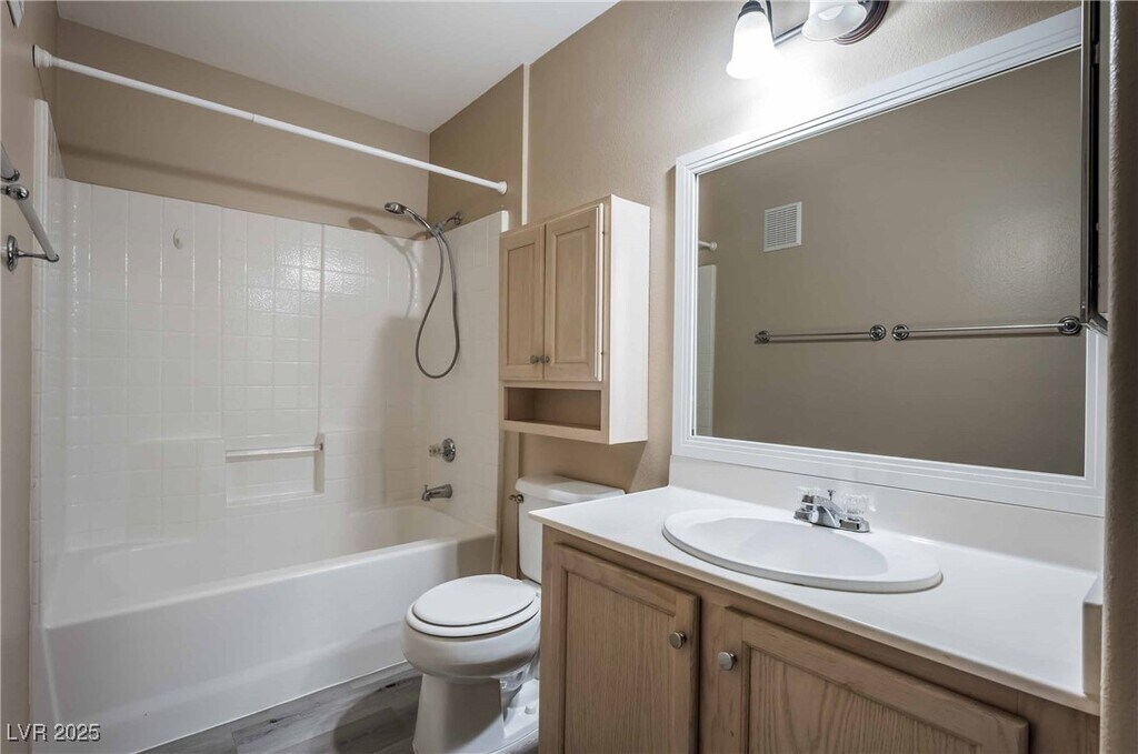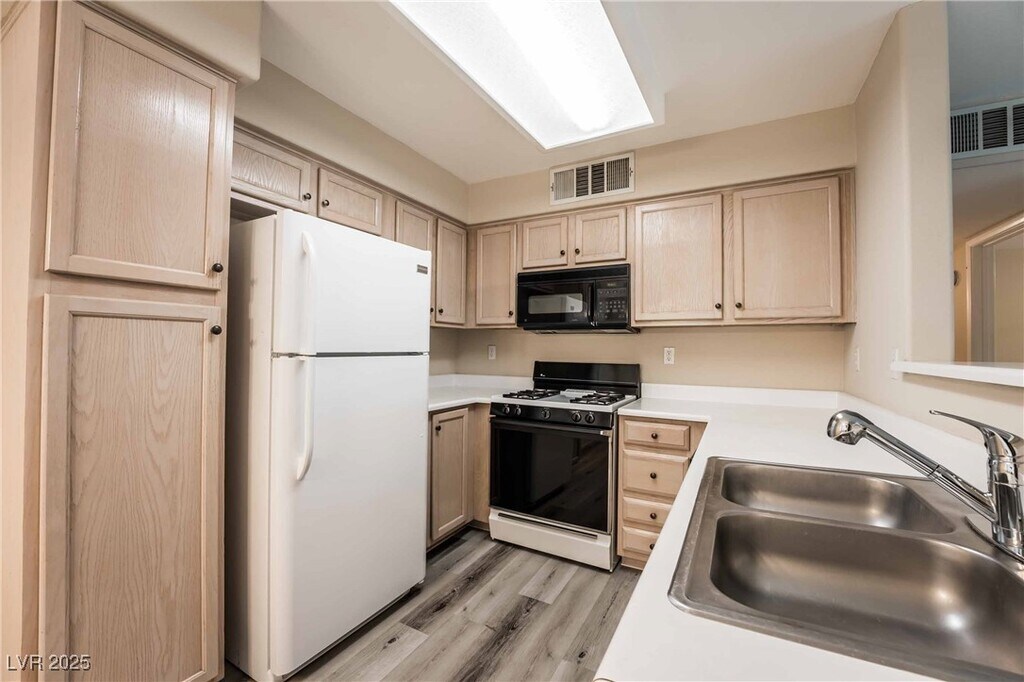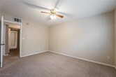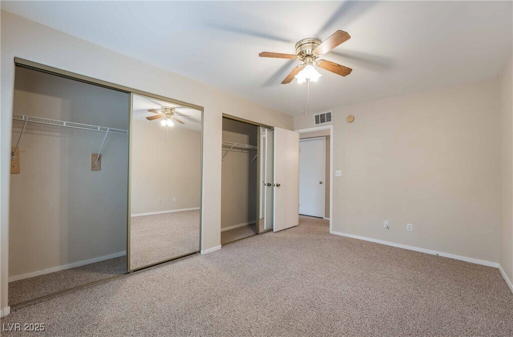 Charming Upstairs unit overlooking the grass area-- FRESHLY PAINTED-- NEW CUSTOM TILED BATHS-- BRAND NEW CARPET IN IN BOTH BEDROOMS-2 bed, 2 bath condo in well-maintained centrally located gated community--Private Balcony-Cozy corner gas fireplace-Great room has mirrored wall-Spacious Primary bedroom has a big walk-in closet & linen closet--Lots of amenities- 3 pools and spas, 24-hour fitness room, walking paths with pet stations-24/7 roaming security, easy access to shopping, freeway, bus route, and The Strip. All appliances included. New AC in 2021, new water heater in 2022.